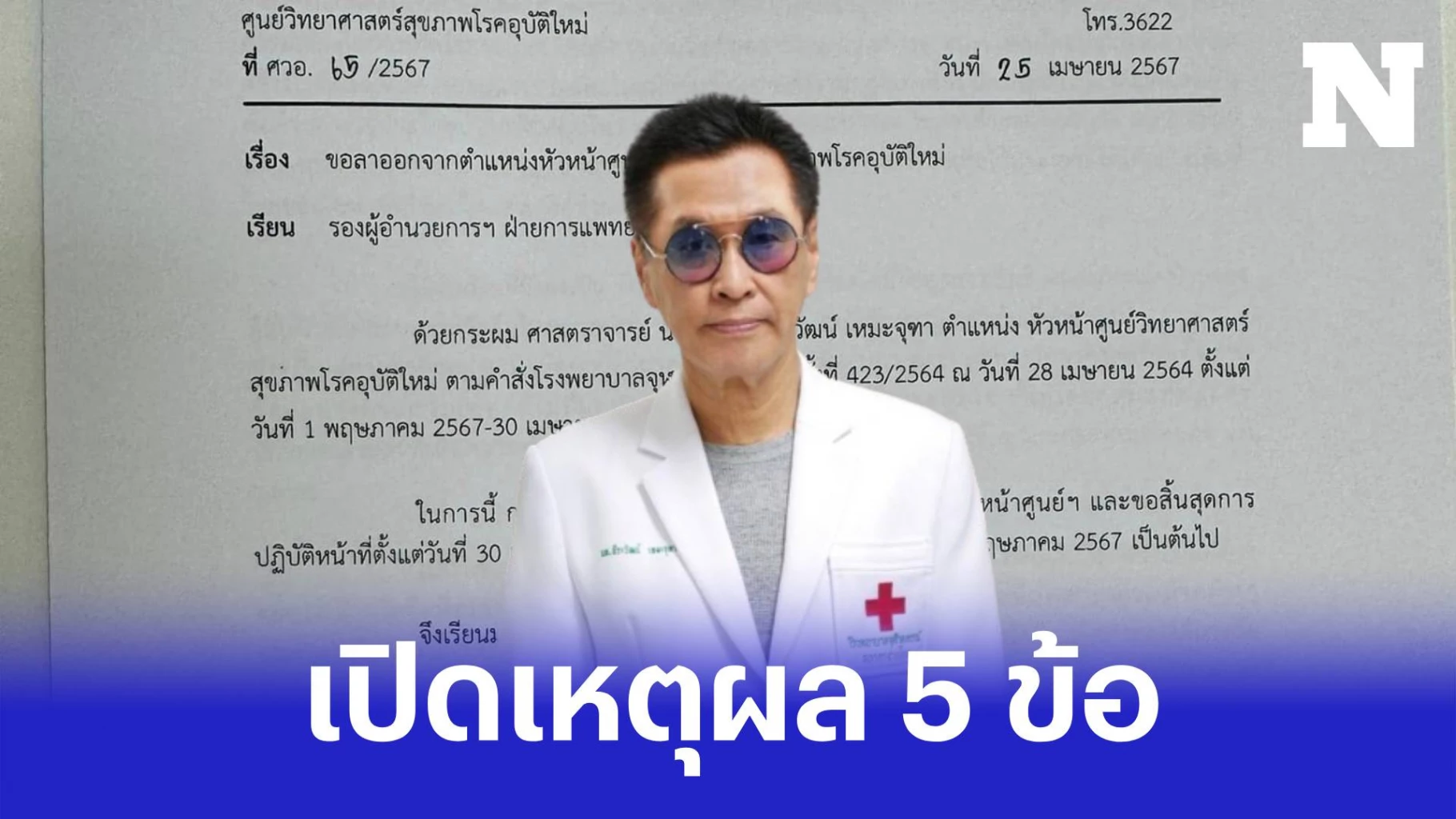 จากกรณี ศาสตราจารย์ นายแพทย์ ธีระวัฒน์ เหมะจุฑา ยื่นหนังสือลาออกจากตำแหน่งหัวหน้าศูนย์วิทยาศาสตร์สุขภาพโรคอุบัติใหม่ และขอสิ้นสุดการปฏิบัติหน้าที่ตั้งแต่วันที่ 30 เมษายน 2567 และคำสั่งมีผลตั้งแต่วันที่ 1 พฤษภาคม 2567 เป็นต้นไป นั้น