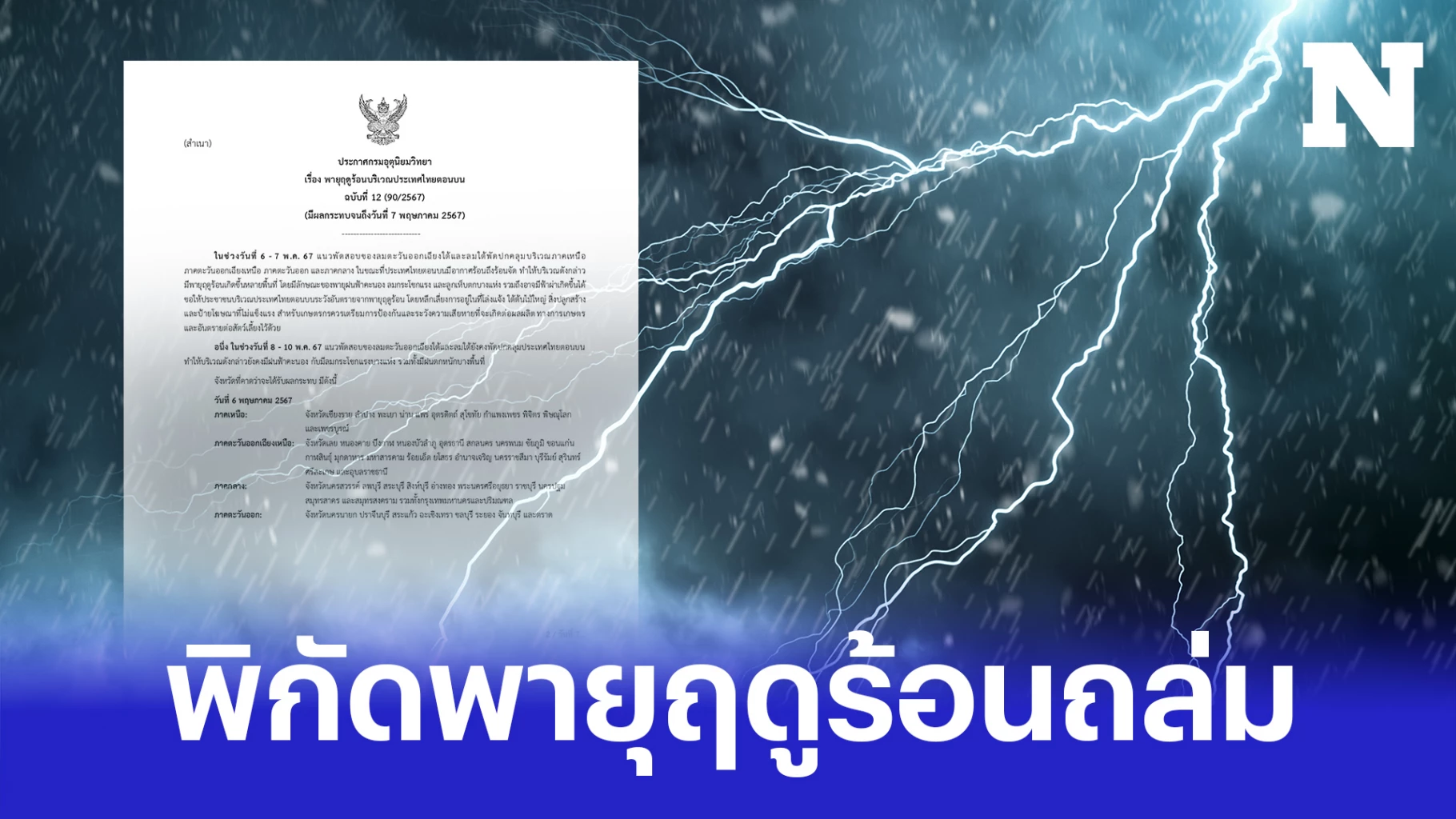 ประกาศกรมอุตุฯ ฉบับ 12 เตือน "พายุฤดูร้อน" ถล่ม 56 จังหวัด กทม.-ปริมณฑลไม่รอด