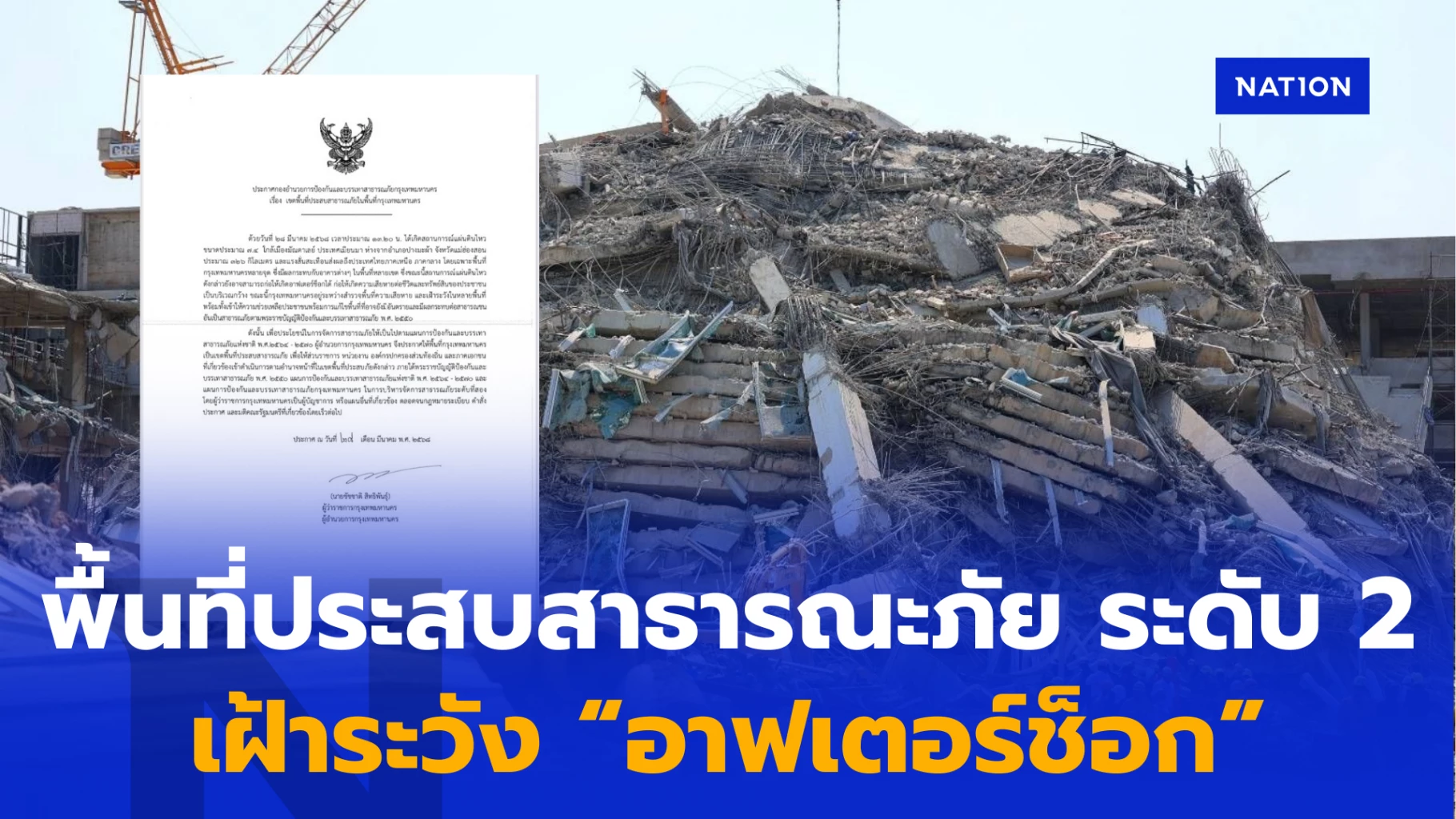 ซึ่งขณะนี้สถานการณ์แผ่นดินไหวดังกล่าว ยังอาจสามารถก่อให้เกิดอาฟเตอร์ช็อกได้ ทำให้กรุงเทพมหานครยังคงต้องเร่งสำรวจพื้นที่ความเสียหาย และเฝ้าระวังในหลายพื้นที่ พร้อมทั้งเข้าให้ความช่วยเหลือประชาชน พร้อมการแก้ไขพื้นที่ที่อาจยังมีอันตรายและมีผลกระทบต่อสาธารณชน อันเป็นสาธารณภัยตามพระราชบัญญัติป้องกันและบรรเทาสาธารณภัย พ.ศ. 2550