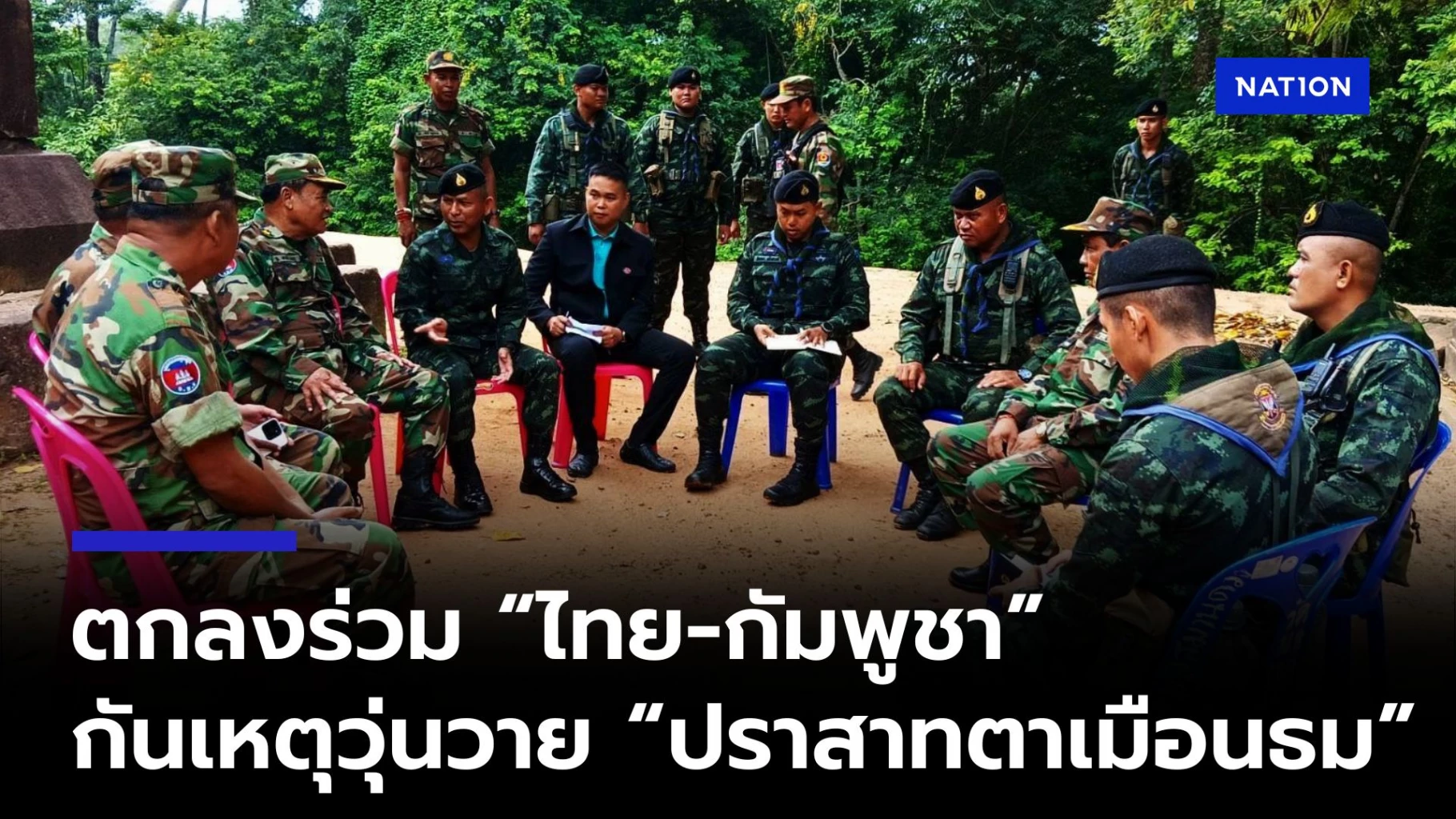 โดยเมื่อช่วงเช้าที่ผ่านมา พ.อ.บุญเสริม บุญบำรุง รอง ผบ.กกล.สุรนารี ได้หารือร่วม พล.ต.เนี๊ยะ วงค์ ผบ.พลน้อย ร.42 เพื่อพบปะหารือ ณ ปราสาทตาเมือนธม โดยมีสรุปผลการพบปะดังนี้