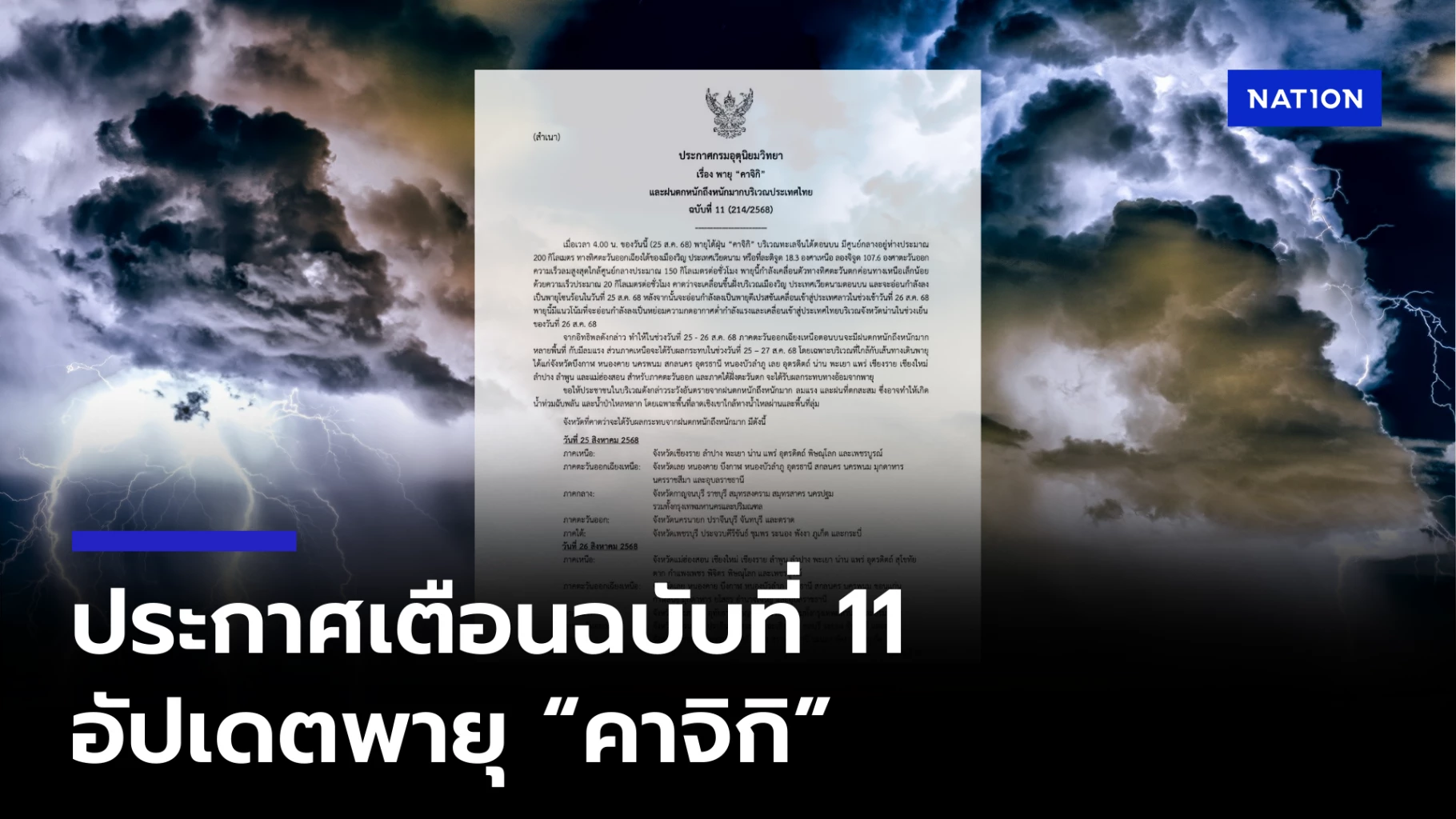 25 สิงหาคม 2568 นางสาวสุกันยาณี ยะวิญชาญ อธิบดีกรมอุตุนิยมวิทยา ลงนามในประกาศกรมอุตุนิยมวิทยา เรื่อง พายุ “คาจิกิ” และฝนตกหนักถึงหนักมากบริเวณประเทศไทยฉบับที่ 11 (214/2568) ระบุว่า เมื่อเวลา 4.00 น. ของวันนี้ (25 ส.ค. 68) พายุไต้ฝุ่น “คาจิกิ” บริเวณทะเลจีนใต้ตอนบน มีศูนย์กลางอยู่ห่างประมาณ 200 กิโลเมตร ทางทิศตะวันออกเฉียงใต้ของเมืองวิญ ประเทศเวียดนาม หรือที่ละติจูด 18.3 องศาเหนือ ลองจิจูด 107.6 องศาตะวันออก ความเร็วลมสูงสุดใกล้ศูนย์กลางประมาณ 150 กิโลเมตรต่อชั่วโมง พายุนี้กำลังเคลื่อนตัวทางทิศตะวันตกค่อนทางเหนือเล็กน้อย ด้วยความเร็วประมาณ 20 กิโลเมตรต่อชั่วโมง คาดว่าจะเคลื่อนขึ้นฝั่งบริเวณเมืองวิญ ประเทศเวียดนามตอนบน และจะอ่อนกำลังลงเป็นพายุโซนร้อนในวันที่ 25 ส.ค. 68