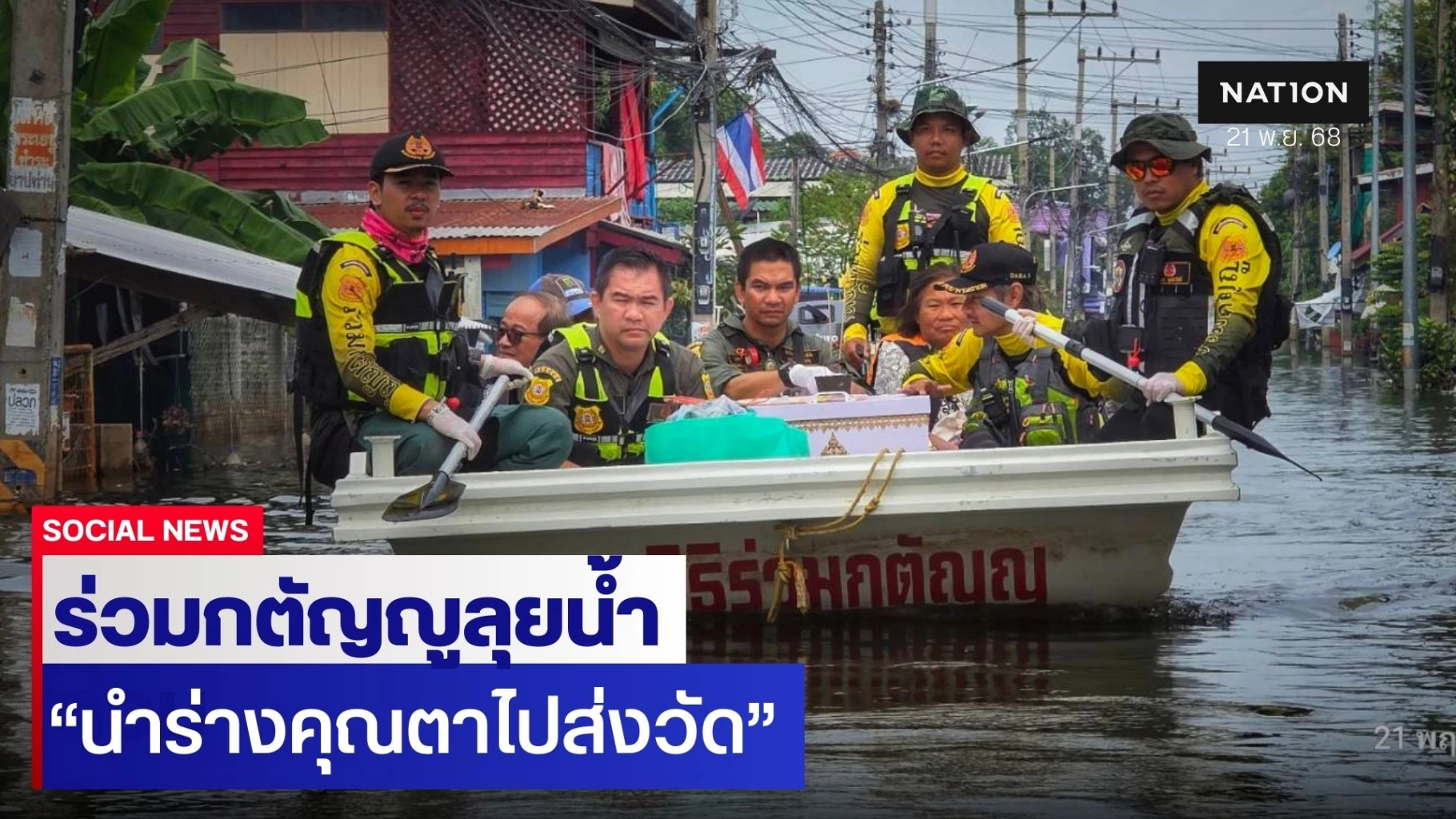 21 พฤศจิกายน 2568 มูลนิธิร่วมกตัญญู นำเรือกู้ภัย พร้อมหีบใส่ร่าง เข้าไปช่วย รับร่างของ คุณตาเสมอ วัย 94 ปี ที่เสียชีวิต ด้วยโรคชรา ในพื้นที่ หมู่1 ต.อินทร์บุรี อ.อินทร์บุรี จ.สิงห์บุรี