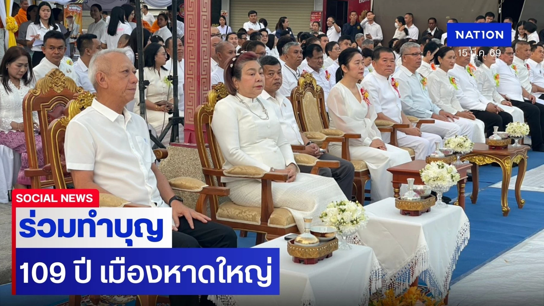 "พิพัฒน์–นิพนธ์" ร่วมทำบุญเมืองหาดใหญ่ ตักบาตรพระ 1,109 รูป เนื่องในโอกาส 109 ปีเมืองหาดใหญ่ ถวายเป็นพระราชกุศลพระพันปีฯ