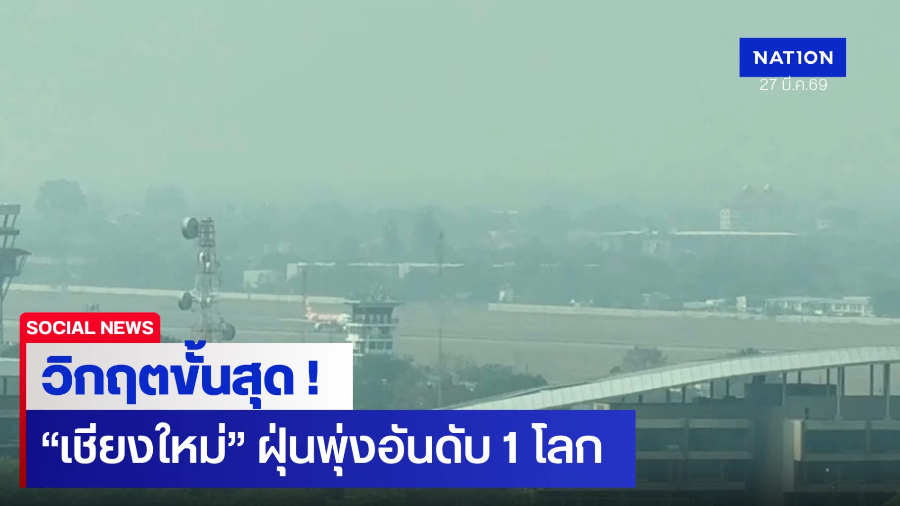 27 มีนาคม 2569 เมื่อเวลา 08:23 น. ผู้สื่อข่าวรายงานว่า ประชาชนและผู้ที่อยู่อาศัยในเขตตัวเมืองเชียงใหม่ ได้รับการแจ้งเตือนจาก cell broadcast เรื่องของปัญหามลพิษทางอากาศของจังหวัดเชียงใหม่ จากสำนักงานป้องกันและบรรเทาสาธารณภัย แจ้งเตือนว่าค่าฝุ่น PM2.5 ขณะนี้มีผลกระทบต่อสุขภาพ และเมื่อเวลา 07:00 น. ของวันที่ 27 มีนาคม 2569 ในเขตอำเภอเมือง จังหวัดเชียงใหม่ มีค่าฝุ่น PM2.5 พุ่งสูงถึง 87.3 ไมโครกรัมต่อลูกบาศก์เมตร และคาดว่าในช่วง 1-2 วันนี้ อากาศยังไม่ดีขึ้น ควรสวมหน้ากากป้องกันฝุ่น และงดกิจกรรมกลางแจ้ง หากมีอาการผิดปกติให้พบแพทย์