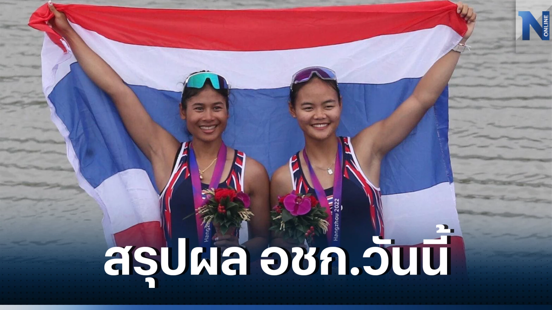 โดยในช่วงเช้า ทัพนักกีฬาไทยประเดิมเหรียญแรกในเอเชียนเกมส์ครั้งนี้ได้สำเร็จ จากเรือกรรเชียง 2 คนหญิง พายคู่ (W2X) ระยะ 2,000 เมตร นำโดย ปาริษา แซ่มพุดซา และ นันธิดา กระจ่างแจ่ม ทำเวลาได้ 7.21.70 นาที คว้าเหรียญทองแดงไปครอง ส่วนเหรียญทองเป็นของนักกีฬาเจ้าภาพ ที่ทำเวลาได้ 7.03.41 นาที และเหรียญเงินเป็นของอิหร่าน ทำเวลาได้ 7.17.08 นาที