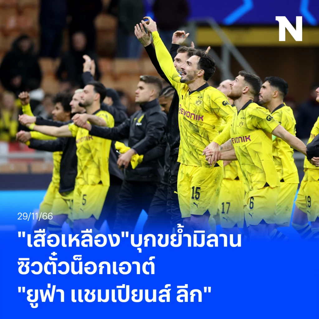 - เอซี มิลาน 1-3 โบรุสเซีย ดอร์ทมุนด์ (0-1 มาร์โก รอยส์ 10, 1-1 ซามูเอล ชุควูเอเซ่ 37, 1-2 เจมี่ ไบนู-กิตเทนส์ 59, 1-3 คาริม อเดเยมี่ 69)