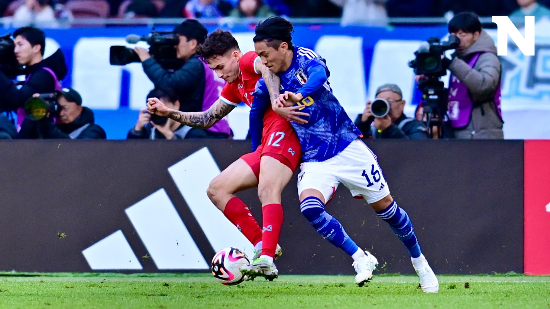 ช่วงทดเจ็บ ทาคุมิ มินามิโนะ ทำชิ่งกับ ริตสึ โดอัน ก่อนยิงเข้าไปให้ ญี่ปุ่นนำห่างเป็น 5-0