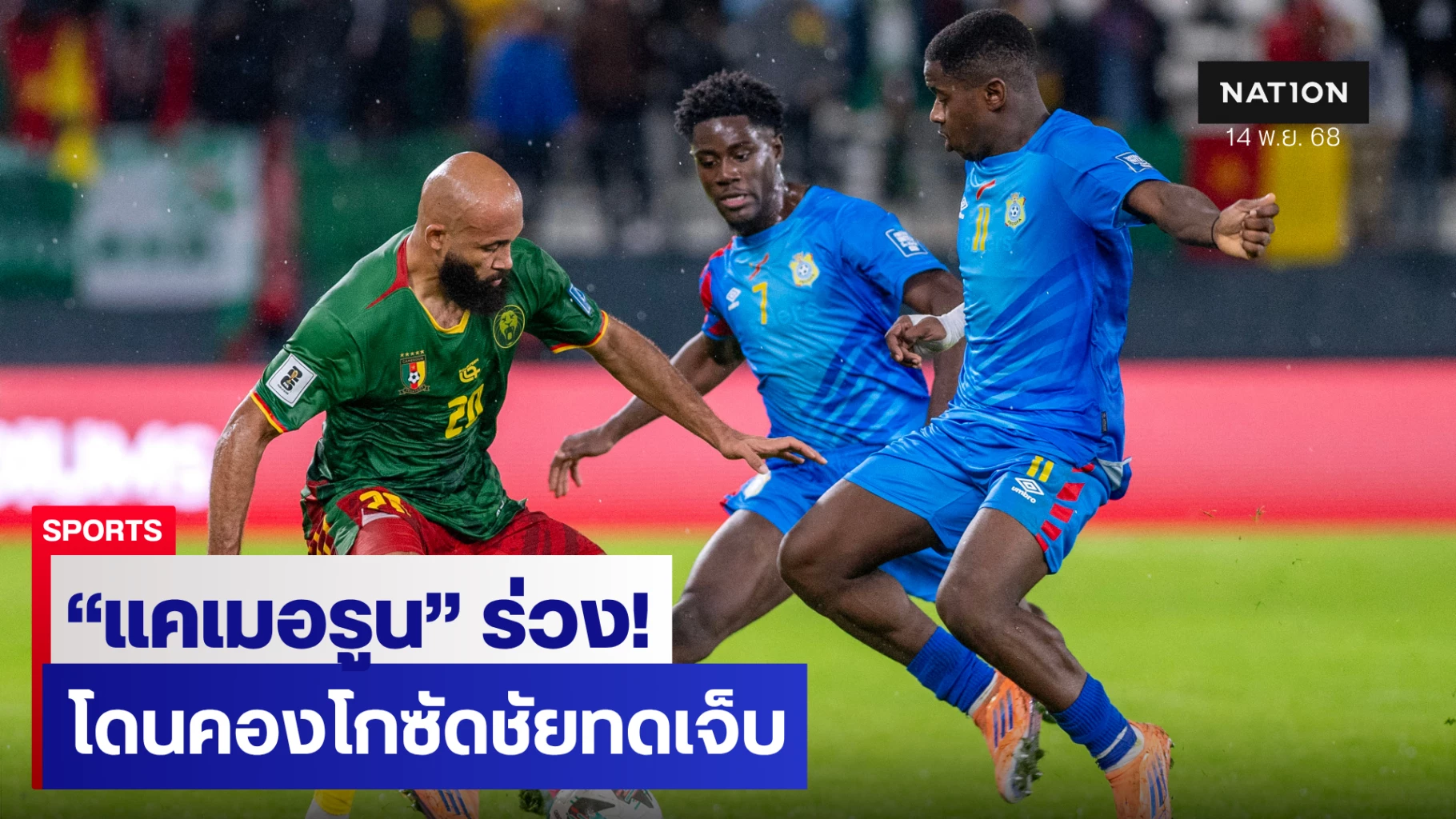 เกมระหว่าง ดีอาร์ คองโก และ แคเมอรูน ที่จัดขึ้นในสนามกลางในราบัต ประเทศโมร็อกโก เป็นไปอย่างสูสีท่ามกลางสายฝนที่ตกลงมาหนัก และดูเหมือนจะจบลงด้วยการเสมอ