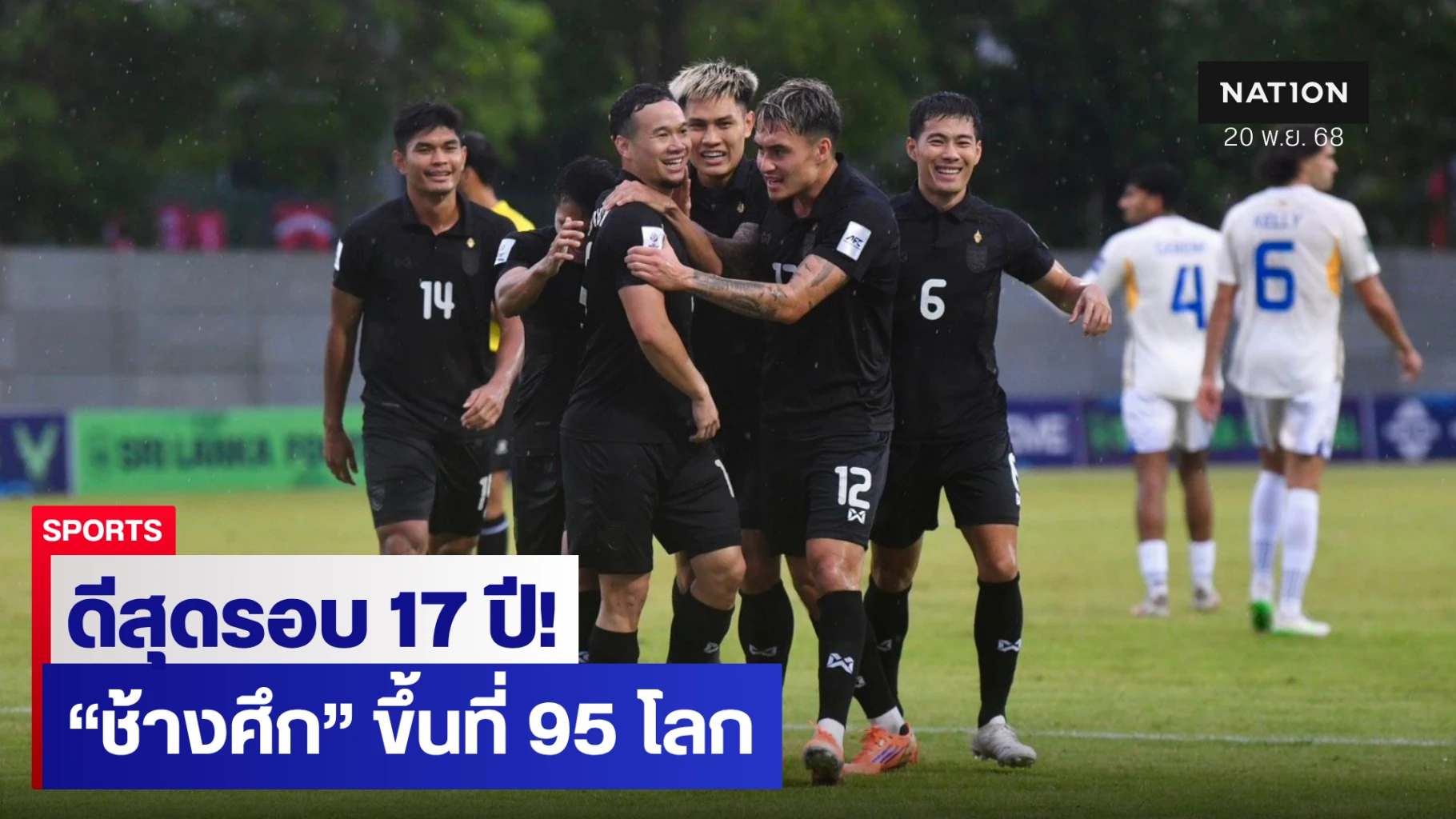 "ช้างศึก" ทีมชาติไทย มีผลงานยอดเยี่ยมในช่วงฟีฟ่าเดย์ ด้วยการเอาชนะ สิงคโปร์ 3-2 ในเกมอุ่นเครื่อง และบุกไปถล่ม ศรีลังกา 4-0 ในศึกเอเชียนคัพ 2027 รอบคัดเลือก ทำให้ ทีมชาติไทย ขยับขึ้นมา 1 อันดับ จากอันดับ 96 มาอยู่ที่ อันดับ 95 ของโลก และเป็น อันดับที่ดีที่สุดในรอบ 17 ปี ยังคงรักษาตำแหน่ง เบอร์ 1 อาเซียน ต่อไป