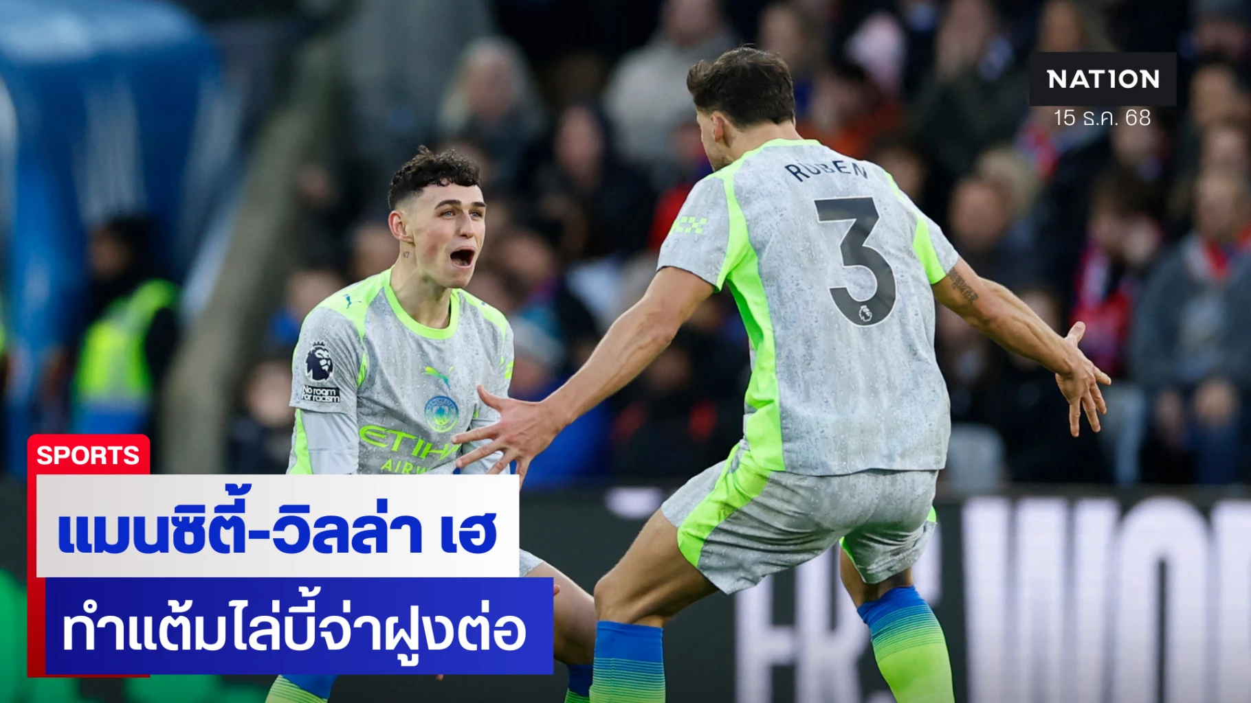 แมนเชสเตอร์ ซิตี้ (อันดับ 2) บุกไปเอาชนะ คริสตัล พาเลซ ได้ถึงถิ่น เซลเฮิร์สต์ พาร์ค 3-0 เพื่อเป็นการล้างแค้นหลังเคยแพ้ในนัดชิง เอฟเอ คัพ เมื่อฤดูกาลที่แล้ว