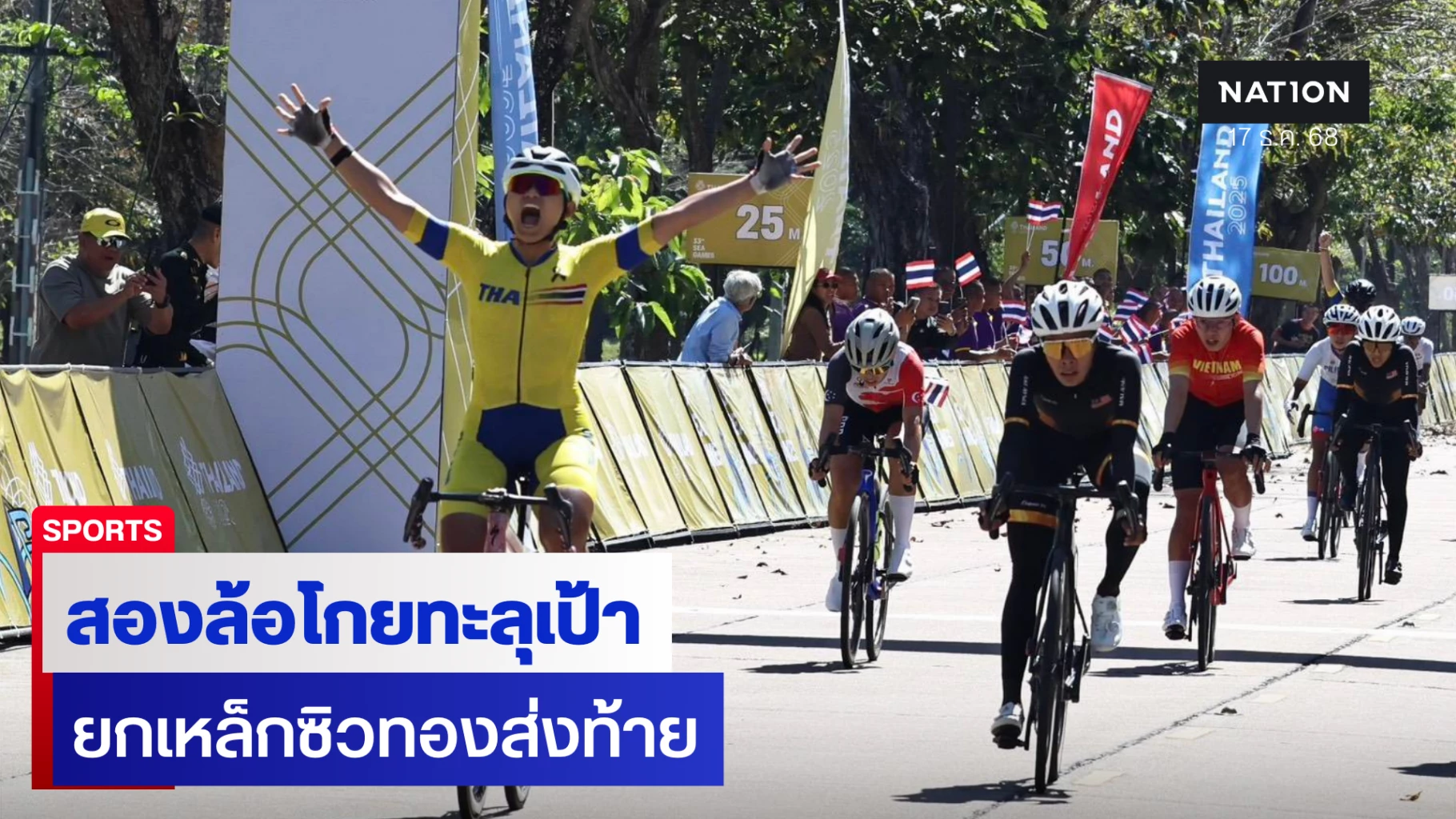 การแข่งขันมหกรรมกีฬา ซีเกมส์ ครั้งที่ 33 เมื่อวันที่ 17 ธันวาคม 2568 ทัพนักกีฬาไทยยังคงทำผลงานได้อย่างร้อนแรง นำโด่งเป็นอันดับ 1 ในตารางสรุปเหรียญรางวัล โดยกวาดไปแล้วถึง 185 เหรียญทอง ทิ้งห่างอันดับ 2 อินโดนีเซียที่มี 72 เหรียญทอง