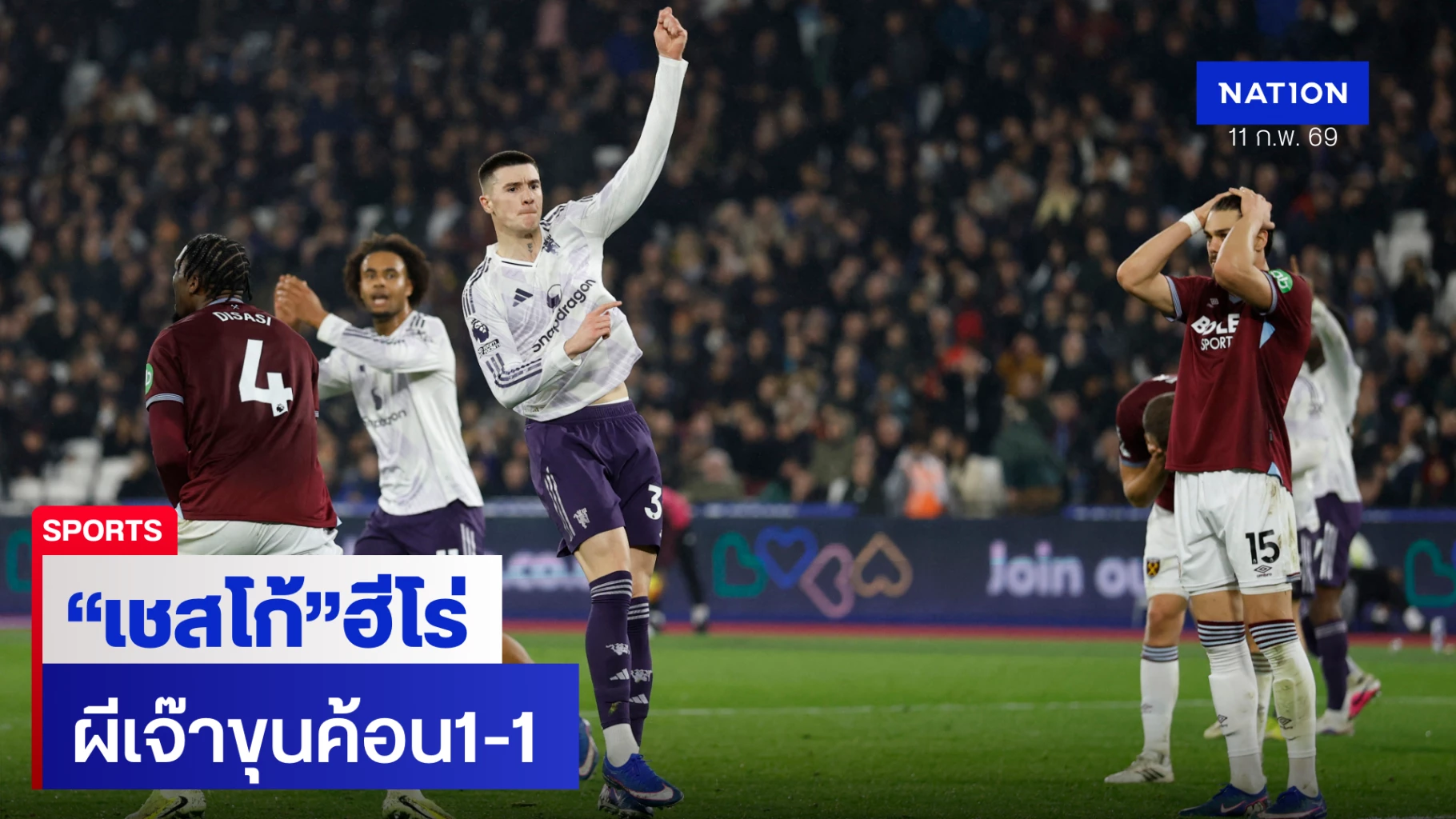 เบนจามิน เชสโก้ สวมบทซูเปอร์ซับซัดประตูตีเสมอวินาทีสุดท้ายนาทีที่ 96 ช่วยให้ แมนฯ ยูไนเต็ด บุกเจ๊า เวสต์แฮม 1-1 รักษาสถิติไร้พ่ายในยุค ไมเคิล คาร์ริค ขณะที่เชลซีพลาดท่าโดนลีดส์ไล่เจ๊า 2-2 ส่วนสเปอร์สวิกฤตหนักแพ้นิวคาสเซิลคาบ้าน 1-2