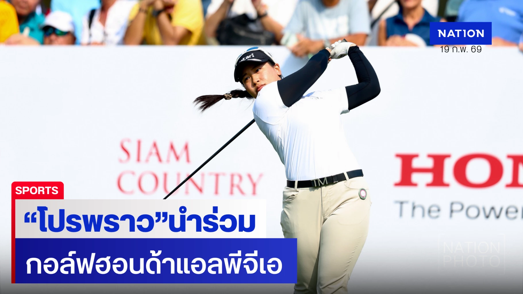 การแข่งขันกอล์ฟแอลพีจีเอทัวร์รายการสำคัญในประเทศไทย "ฮอนด้า แอลพีจีเอ ไทยแลนด์ 2026" (Honda LPGA Thailand 2026) ครั้งที่ 19 ชิงเงินรางวัลรวม 1.8 ล้านดอลลาร์สหรัฐ (ประมาณ 60 ล้านบาท) ณ สนามสยามคันทรีคลับ โอลด์คอร์ส พัทยา จังหวัดชลบุรี ระยะ 6,576 หลา พาร์ 72 เปิดฉากดวลวงสวิงรอบแรกเมื่อวันพฤหัสบดีที่ 19 กุมภาพันธ์ 2569 โดยสถานการณ์วันแรกเป็นไปอย่างเข้มข้นหลังมีฝนตกลงมาก่อนแข่งทำให้สภาพสนามมีความท้าทายมากขึ้น