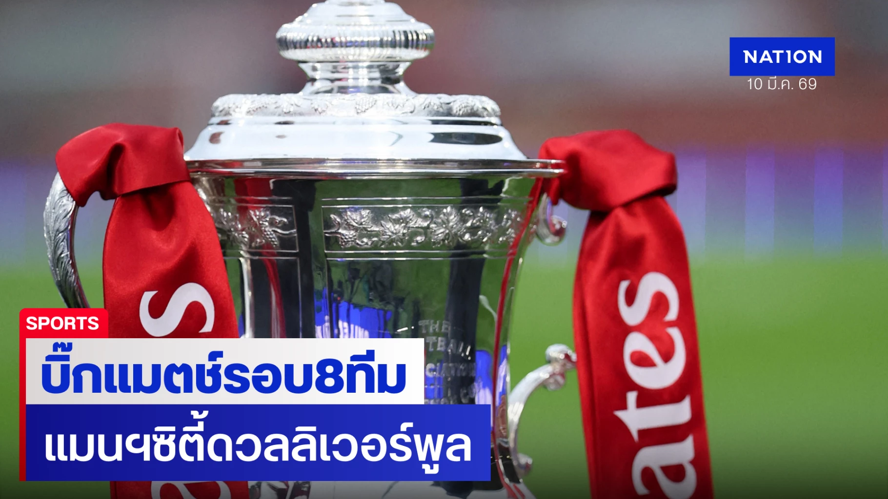 การจับสลากประกบคู่ฟุตบอล เอฟเอ คัพ รอบก่อนรองชนะเลิศ (8 ทีมสุดท้าย) เมื่อคืนวันจันทร์ที่ 9 มีนาคม 2569 ที่ผ่านมา สร้างความฮือฮาไปทั่วโลกเมื่อ แมนเชสเตอร์ ซิตี้ ถูกจับสลากให้เปิดสนามเอติฮัด สเตเดี้ยม ต้อนรับการมาเยือนของคู่ปรับตลอดกาลอย่าง ลิเวอร์พูล ซึ่งถือเป็นคู่ที่น่าจับตามองที่สุดในรอบนี้
