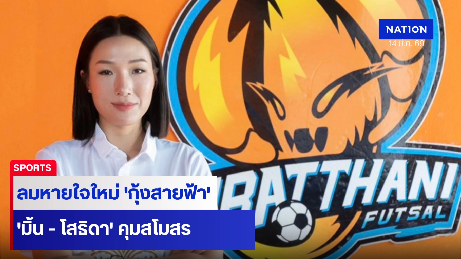 “กุ้งสายฟ้า” ได้ลมหายใจใหม่ “โสธิดา กาญจนะ” นั่งประธานสโมสรคนใหม่ ฝ่าวิกฤตการเงิน สานฝันชาวสุราษฎร์ฯ ให้ฟุตบอลในร่มกลับมาจุดไฟหัวใจคนทั้งเมือง