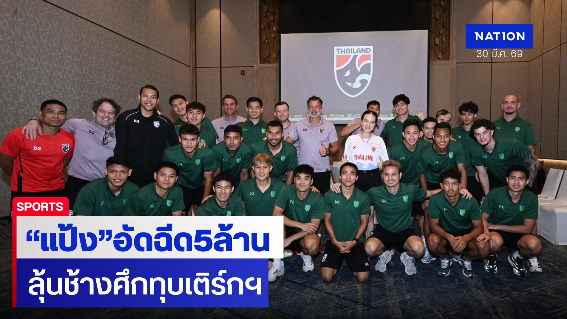 มาดามแป้งเยี่ยมแคมป์ช้างศึก อัดฉีด 3 ล้านบาทหากชนะเติร์กเมนิสถาน และเพิ่มเป็น 5 ล้านหากชนะขาด 3 ลูก ย้ำเป็นเกมสำคัญชี้ชะตาเข้ารอบเอเชียน คัพ 2027 รอบสุดท้ายที่ซาอุฯ