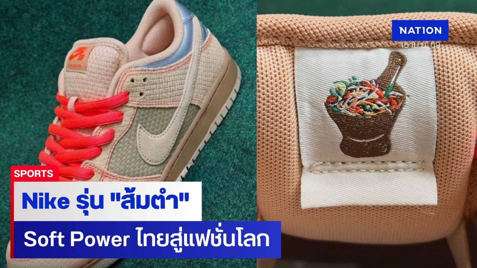 “วธ.” ปลื้ม Nike รองเท้ากีฬาแบรนด์ระดับโลก หยิบ "ส้มตำ" เปิดตัวรองเท้ารุ่นพิเศษ Nike Dunk Low “Som Tum” ต่อยอด Soft Power ไทยสู่แฟชั่นโลก