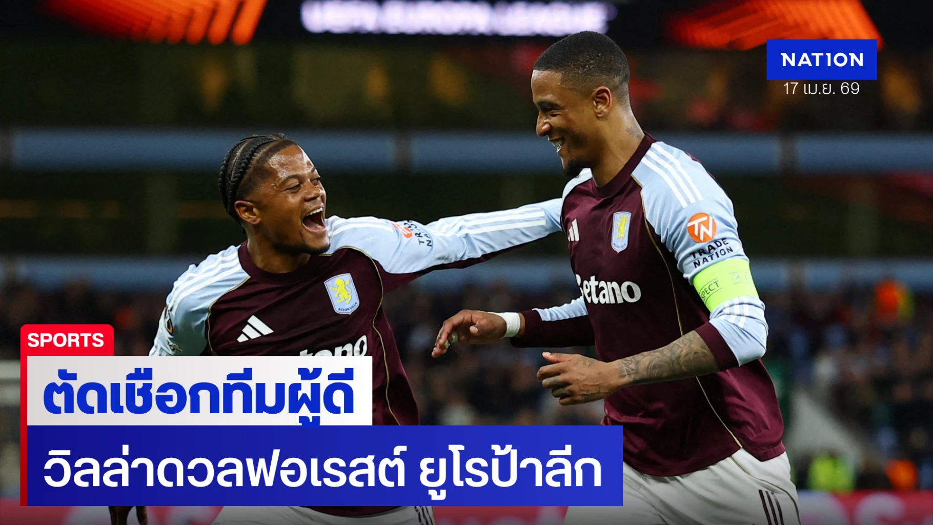 ศึกฟุตบอลถ้วยยุโรป ยูโรป้า ลีก รอบ 8 ทีมสุดท้าย นัดที่สอง เมื่อคืนวันพฤหัสบดีที่ผ่านมา (ตามเวลาท้องถิ่น) เกิดประวัติศาสตร์หน้าใหม่ของสโมสรจากอังกฤษ เมื่อ "สิงห์ผงาด" แอสตัน วิลล่า และ "เจ้าป่า" น็อตติ้งแฮม ฟอเรสต์ ต่างตบเท้าเข้าสู่รอบรองชนะเลิศ ไปดวลกันเองในดาร์บี้แมตช์สายเลือดผู้ดี