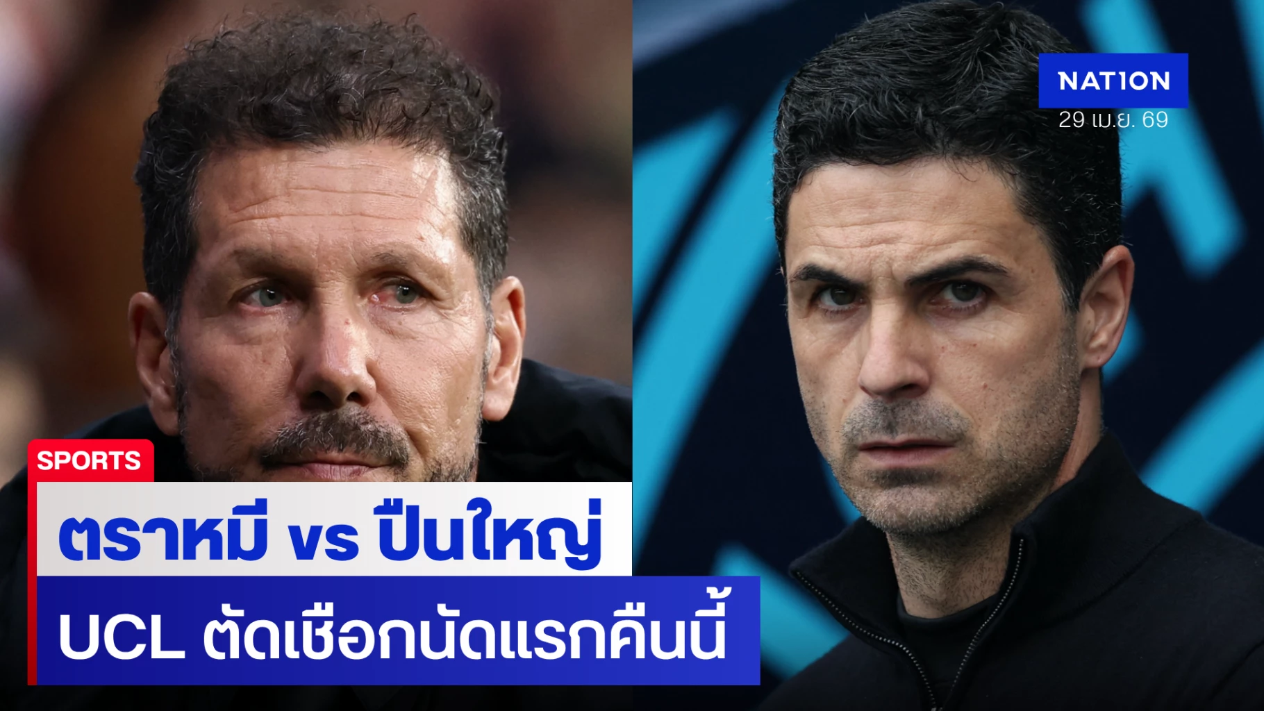 ศึกฟุตบอล ยูฟ่า แชมเปียนส์ลีก รอบรองชนะเลิศ นัดแรก คืนวันพุธนี้ (30 เมษายน 2569) เป็นการพบกันของสองทีมที่กำลังไล่ล่าแชมป์ยุโรปสมัยแรกอย่าง "ตราหมี" แอตเลติโก มาดริด ยอดทีมจากสเปน และ "ปืนใหญ่" อาร์เซน่อล จ่าฝูงพรีเมียร์ลีก ณ สนามเอสตาดิโอ เมโทรโปลิตาโน่ โดยผู้ชนะจะผ่านเข้าไปรอพบผู้ชนะระหว่าง บาเยิร์น มิวนิค หรือ เปแอสเช ในรอบชิงชนะเลิศที่บูดาเปสต์