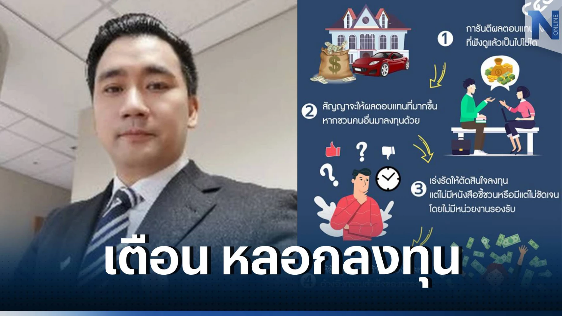 โดยตนอยากฝากเตือนมายังพี่น้องประชาชนเกี่ยวกับข้อสังเกต ที่เข้าข่ายการถูกหลอกลงทุน ที่เข้าข่ายแชร์ลูกโซ่ หรือ money game มีข้อสังเกต 5 ข้อดังนี้