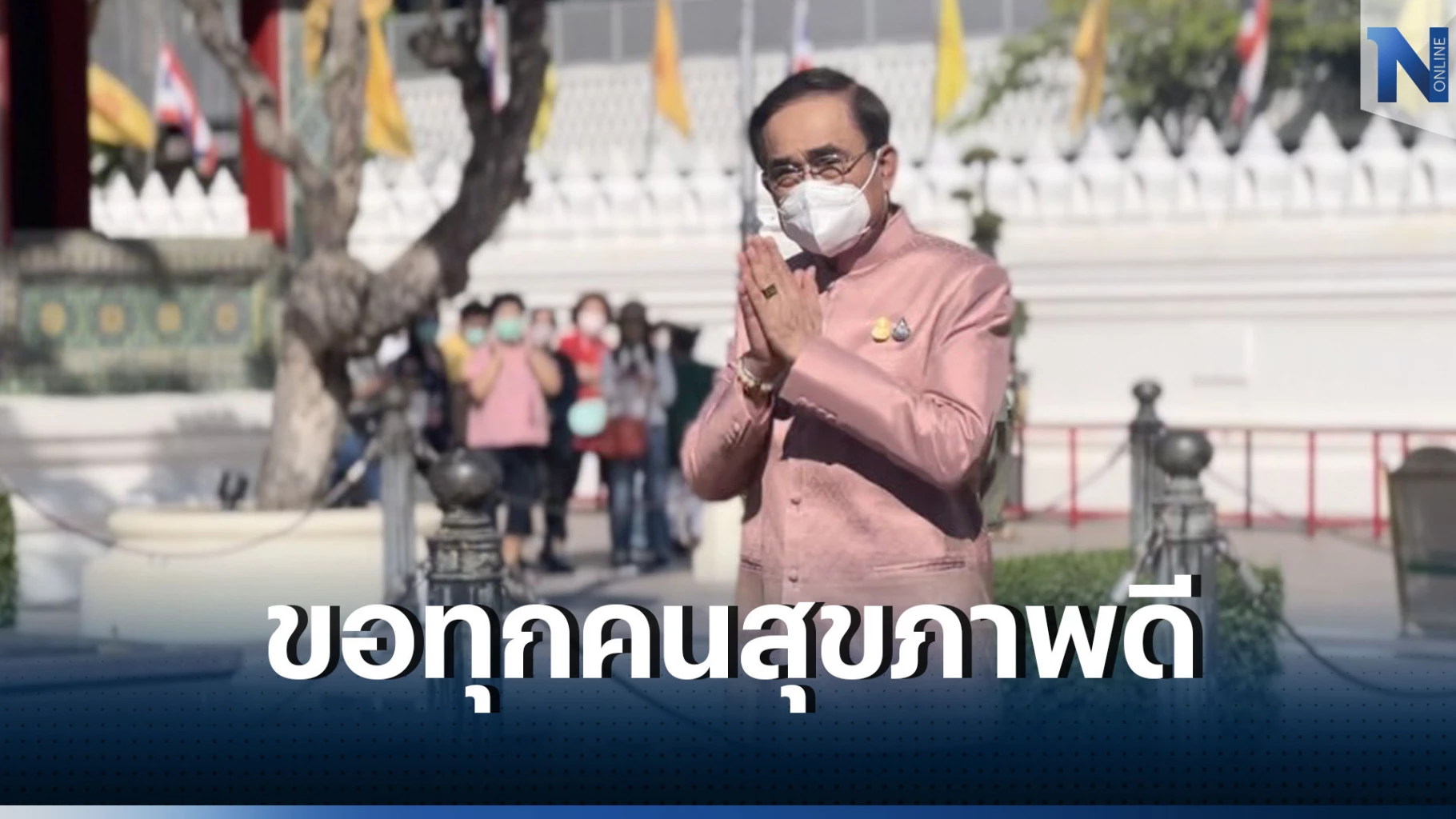 ทันทีที่เดินทางมาถึง นายกรัฐมนตรีได้สักการะ พระบรมราชานุสาวรีย์ พระบาทสมเด็จพระจุลจอมเกล้าเจ้าอยู่หัวฯ รัชกาลที่ 5 ก่อนจะทักสื่อมวลชนและประชาชนที่มาทำบุญ โดยกล่าวว่า " สวัสดีปีใหม่ทุกคน ขอให้สุขภาพดีกันทุกคนนะ" ซึ่งสื่อมวลชนได้ทักว่า วันนี้นายกฯ ใส่เสื้อสวย นายกฯ ยิ้มกลับและกล่าวขอบคุณ อย่างอารมณ์ดี ขณะที่ประชาชนได้กล่าวทักทายนายกฯ พร้อมภรรยา ตลอดทาง และขอถ่ายภาพ บอกว่า นายกฯตัวจริงหล่อกว่าในทีวี