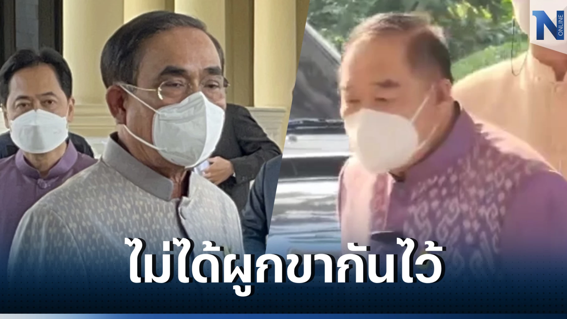 ผู้สื่อข่าวถามย้ำอีกว่า แต่เป็นการลงในเวลาใกล้เคียงกัน จึงเลี่ยงที่จะมองแบบนั้นไม่ได้ พล.อ.ประยุทธ์ กล่าวว่า "ผมไม่ได้ผูกขาเขาไว้นี่นา ท่านก็ไม่ได้ผูกขาผม ผมไปไหนก็ไปได้ ท่านไปไหนก็ได้ ไปเวลาเดียวกันก็ได้ไม่มีปัญหาหรอก" และเมื่อถามว่าเป็นยุทธศาสตร์ทางการเมืองหรือไม่ พล.อ.ประยุทธ์ ไม่ได้ตอบคำถามและเดินออกจากวงสัมภาษณ์ทันทีด้วยท่าทีหงุดหงิด และในช่วงท้ายเมื่อผู้สื่อข่าวถามอีกว่า ตอนนี้พี่น้อง 2 ป. ดูมีระยะห่างต่อกัน พล.อ.ประยุทธ์ กล่าวว่า "ไม่มีหรอกครับ" ก่อนเดินขึ้นตึกไทยคู่ฟ้าไปทันที