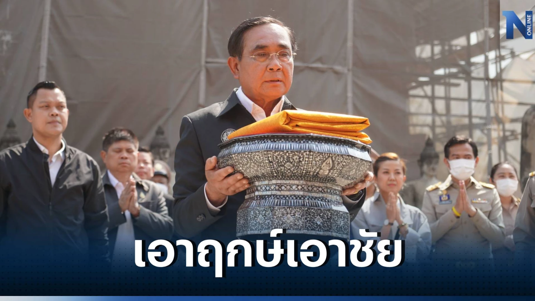 โดยนายกฯ ได้ทำพิธีห่มผ้าพระเจดีย์ชัยมงคล สักการะพระพุทธรูปปางไสยาสน์ และสักการะพระบรมราชานุสาวรีย์สมเด็จพระนเรศวรมหาราช เพื่อความเป็นสิริมงคล