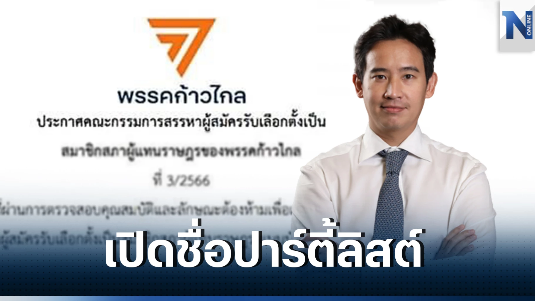 โดยรายชื่อส่วนใหญ่เป็นอดีต ส.ส.บัญชีรายชื่อเดิม และอดีต ส.ส.แบบแบ่งเขตบางรายขึ้นมาอยู่ในสัดส่วนปาร์ตี้ลิสต์ นอกจากนี้ยังมี นายพิธา ลิ้มเจริญรัตน์ หัวหน้าพรรค นายชัยธวัช ตุลาธน เลขาธิการพรรค นายรังสิมันต์ โรม โฆษกพรรค นายวิโรจน์ ลักขณาอดิศร อดีตผู้สมัครผู้ว่าฯ กทม.ของพรรค นายพริษฐ์ วัชรสินธุ หรือ “ไอติม” ผู้จัดการการสื่อสารและการรณรงค์นโยบายของพรรค นายกรุณพล เทียนสุวรรณ หรือ “เพชร” อดีตดารานักแสดง และอดีตผู้สมัคร ส.ส.กทม. เขตหลักสี่-จตุจักร เมื่อปี 2565