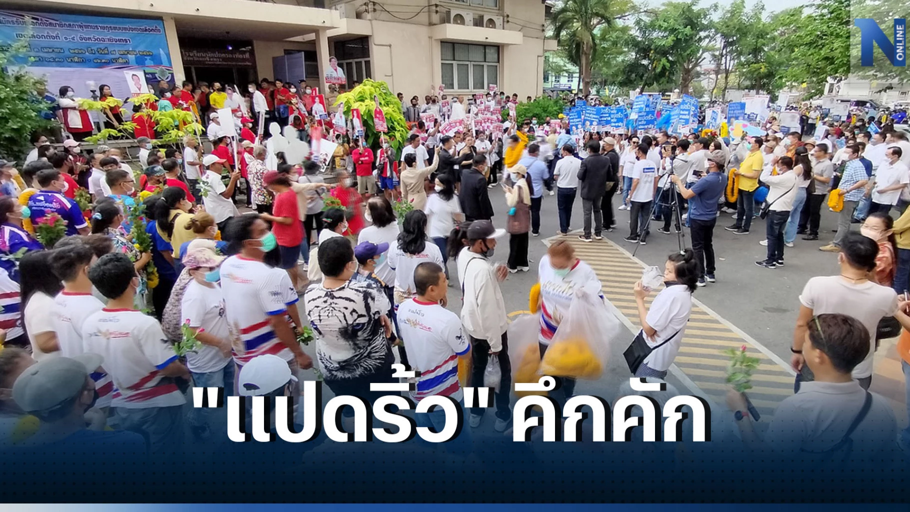 ทั้งนี้ หลังจากได้ลำดับหมายเลขผู้ยื่นใบสมัครแล้ว บรรดากองเชียร์แต่ละฝ่ายต่างพากันส่งเสียงร้องเชียร์ชื่อผู้สมัครของตนเอง หรือคนที่ชื่นชอบ และขานหมายเลขสลับกันไปของแต่ละกลุ่ม จนมีเสียงอื้ออึงไปทั่วทั้งบริเวณ