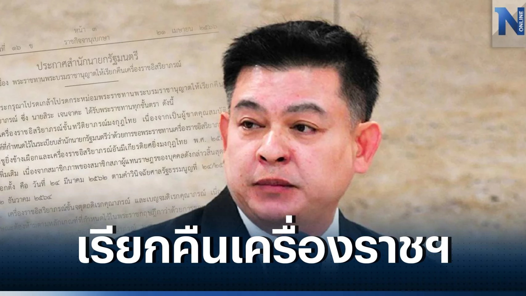 "ราชกิจจาฯ"เผยแพร่ประกาศสำนักนายกฯ เรียกคืนเครื่องราชฯ "สิระ เจนจาคะ"