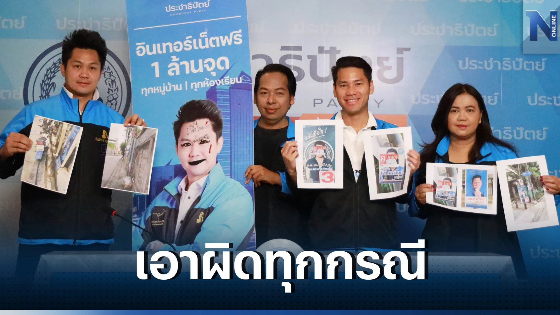 "ประชาธิปัตย์" ยันเอาผิดกับคนทำลายป้ายหาเสียงทุกกรณี ขอทุกพรรคเคารพกติกา แข่งขันกันด้วยนโยบาย เน้นหาเสียงสร้างสรรค์