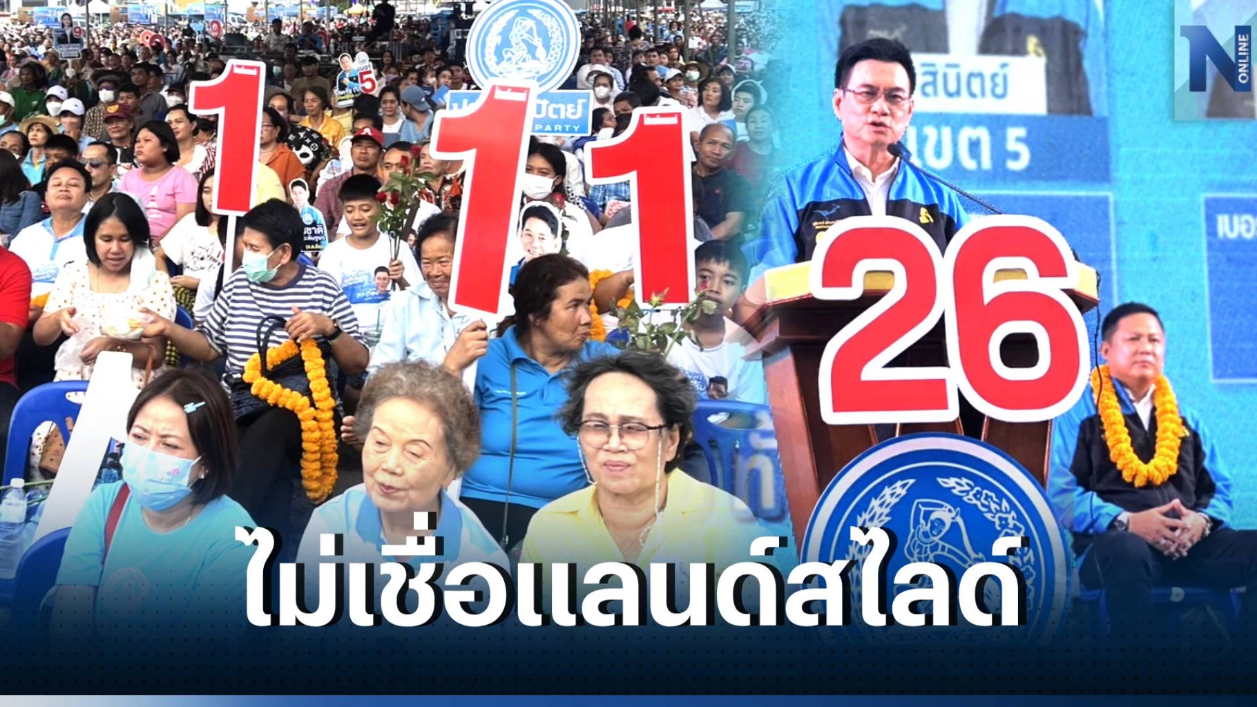 โดยจากประสบการณ์ทางการเมืองในเลือกตั้งครั้งนี้ ไม่เชื่อว่าจะมีแลนด์สไลด์ ไม่มีพรรคการเมืองใด พรรคการเมืองหนึ่งได้คะแนนเกินครึ่งและตั้งพรรคการเมืองพรรคเดียวได้ อยากให้พี่น้องเลือกพรรคการเมืองที่พร้อมที่สุด และเป็นสถาบันการเมืองมายาวนาน เป็นพรรคของประชาชน คนปักษ์ใต้บ้านเรา คือ "พรรคประชาธิปัตย์"