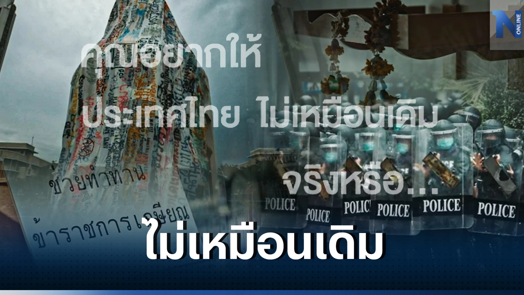 ก่อนมีเสียงบรรยายสรุปตอนท้ายพร้อมขึ้นข้อความว่า " คุณอยากให้ ประเทศไทยไม่เหมือนเดิม จริงหรือ"