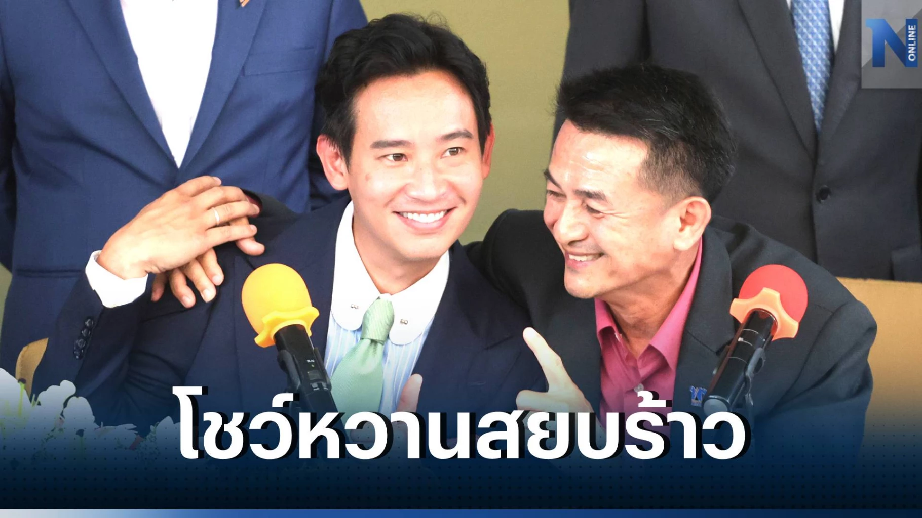 ทั้งนี้ ภายหลังเสร็จสิ้นการแถลงข่าว นพ.ชลน่าน และนายพิธา ได้นำมือมาประกบกันเป็นรูปหัวใจโชว์สื่อด้วย