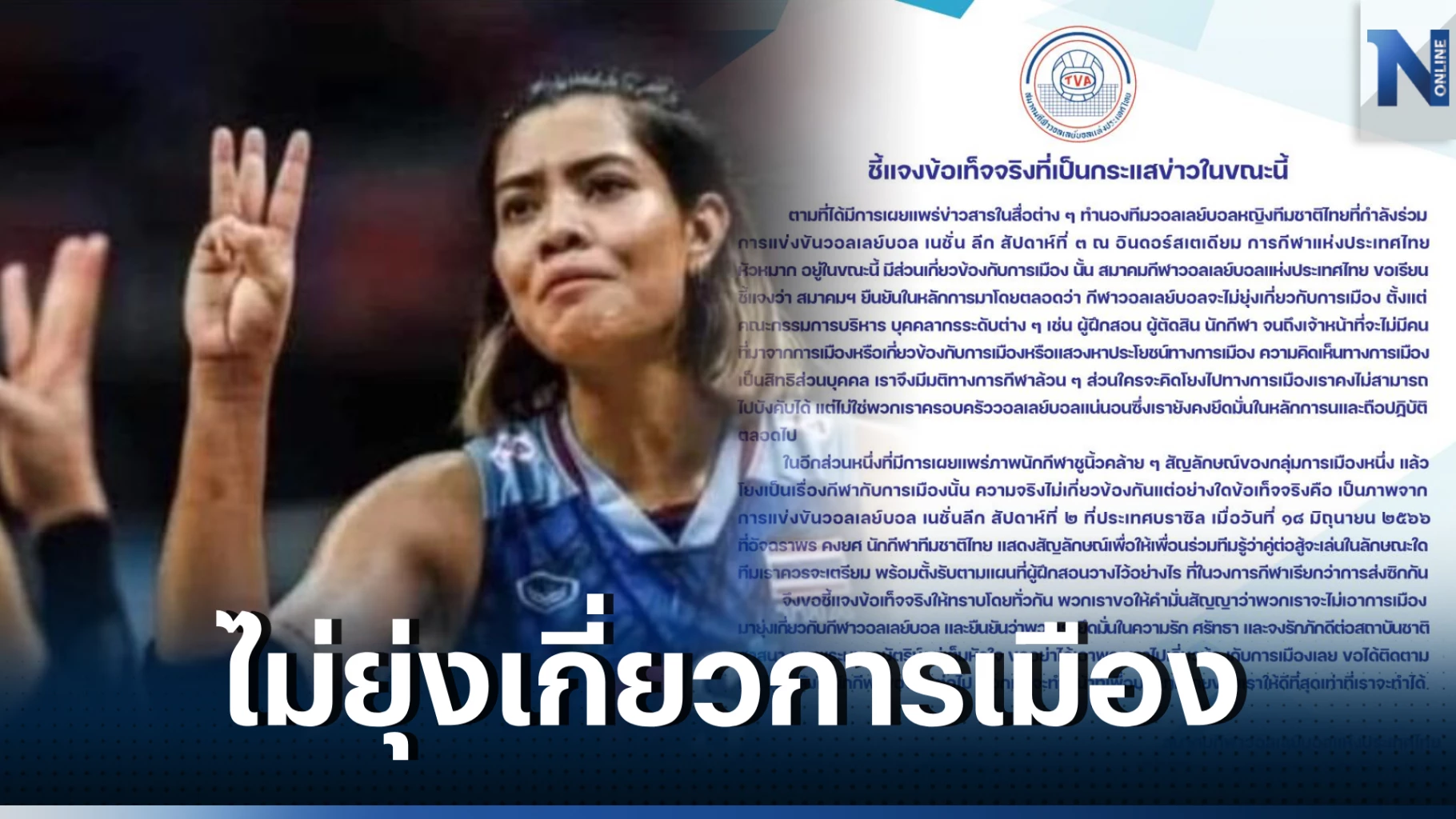 ตามที่ได้มีการเผยแพร่ข่าวสารในสื่อต่าง ๆ ทำนองทีมวอลเลย์บอลหญิงทีมชาติไทยที่กำลังร่วมการแข่งขันวอลเลย์บอล เนชั่น ลีก สัปดาห์ที่ 3 ณ อินดอร์สเตเดียม การกีฬาแห่งประเทศไทยหัวหมาก อยู่ในขณะนี้ มีส่วนเกี่ยวข้องกับการเมือง
