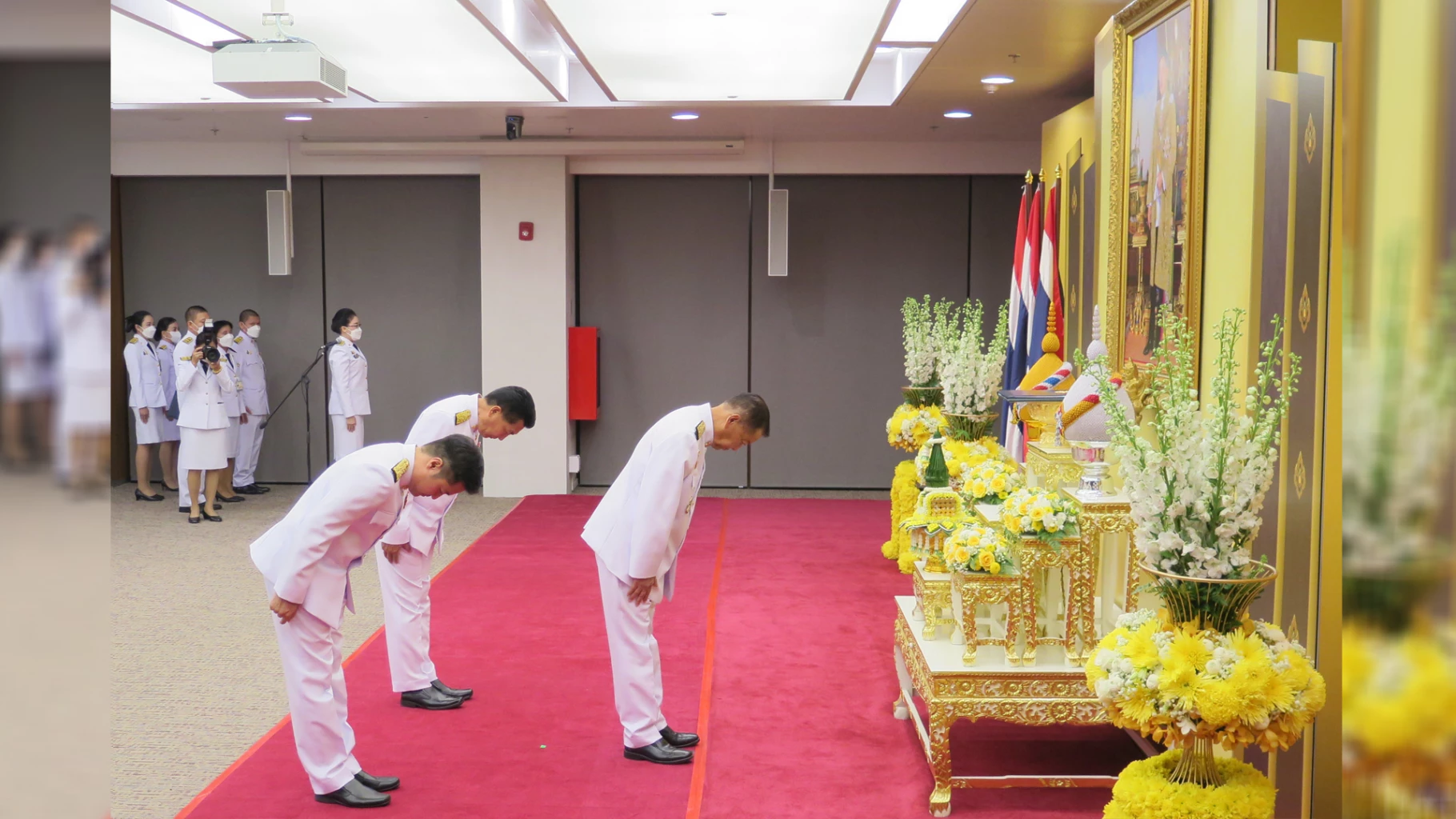 อย่างไรก็ตาม บริเวณชั้น 6 ที่เป็นสถานที่ในการจัดพิธีรับพระบรมราชโองการ โดย มี ส.ส. จากพรรคประชาชาติ พรรคก้าวไกลและพรรคเพื่อไทย และข้าราชการ สำนักงานเลขาธิการสภาผู้แทนราษฎร แต่งเครื่องแบบข้าราชการชุดขาวเต็มยศเข้าร่วมพิธีอย่างสมเกียรติ จากนั้นทั้งหมดได้ถ่ายภาพเพื่อเป็นที่ระลึกหน้าพระบรมฉายาลักษณ์