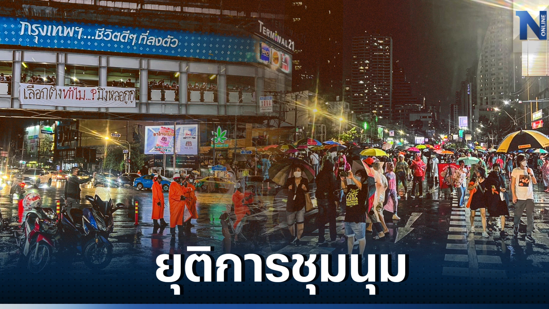 ม็อบ บก.ลายจุด ประกาศ"ยุติการชุมนุม"หลังโดนพระพิรุณกระหน่ำปลุกใส่เสื้อดำ