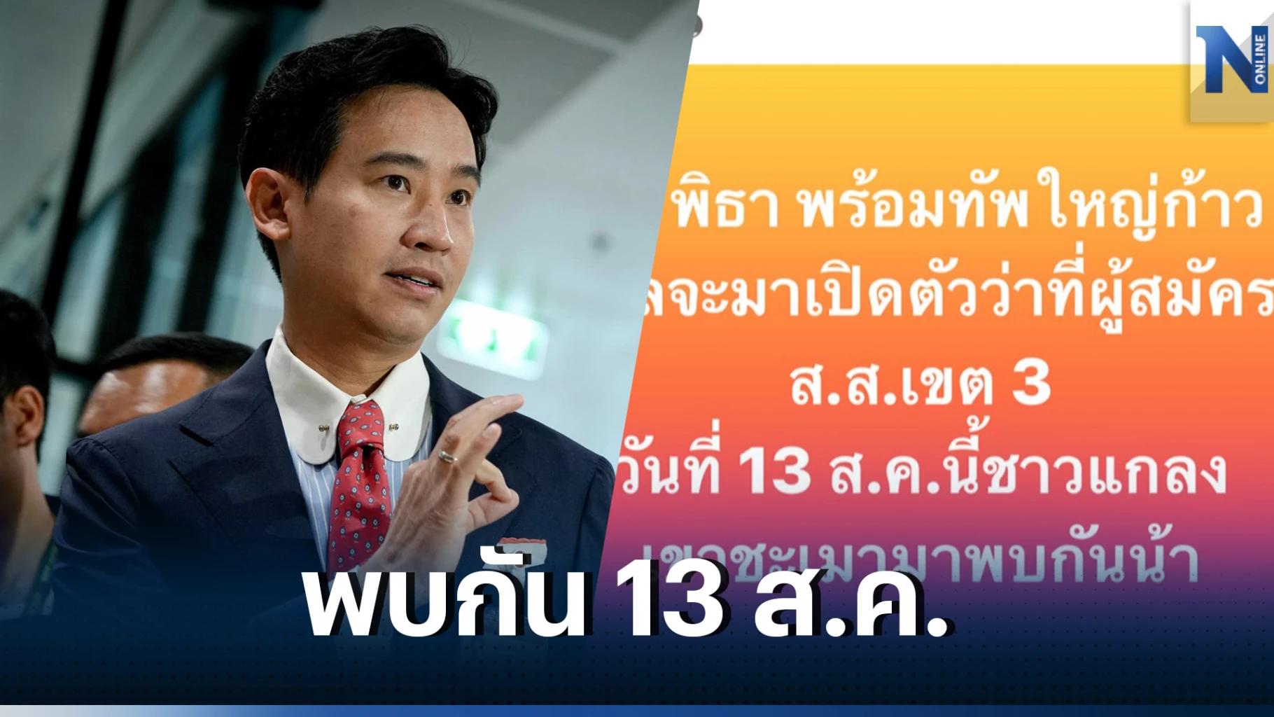 ล่าสุดผู้สื่อข่าวรายงานว่า เฟซบุ๊กก้าวไกลระยอง โพสต์ข้อความ ระบุว่า “ทิม พิธา พร้อมทัพใหญ่ก้าวไกลจะมาเปิดตัวว่าที่ผู้สมัคร สส.เขต 3 วันที่ 13 ส.ค.นี้ชาวแกลงเขาชะเมามาพบกันน้า”