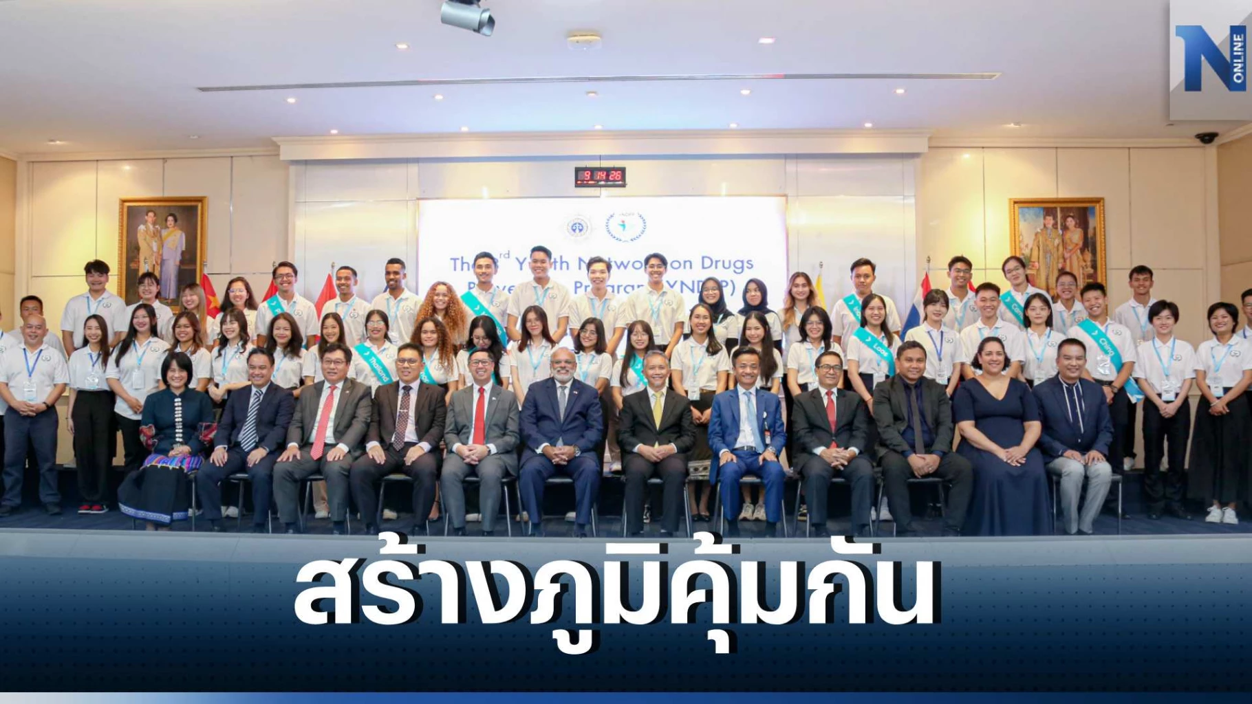 นายธนากร คัยนันท์ รองเลขาธิการ ป.ป.ส. ผู้แทนจาก UNODC ผู้แทนเอกอัครราชทูต และเยาวชนที่เข้าร่วมโครงการฯ จาก 10 ประเทศ ได้แก่ กัมพูชา จีน ลาว อินโดนีเซีย ฟิลิปปินส์ เมียนมา มาเลเซีย เวียดนาม ติมอร์-เลสเต ไทย และผู้บริหาร สำนักงาน ป.ป.ส. ร่วมงานกว่า 100 คน