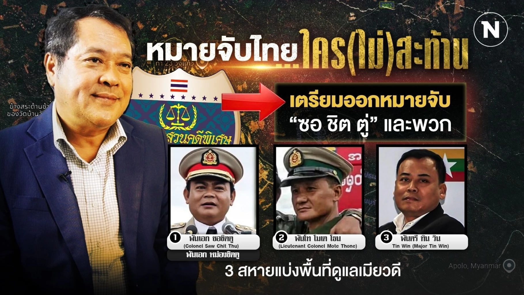 พ.ต.อ.ทวี สอดส่อง และ DSI เตรียมออกหมายจับ “ซอ ชิต ตู่” และพวกปรากฏชื่อ 3 คน คือ พันเอก หม่องชิตตู , พันโท โมเต โธน และ พันตรี ทิน วิน
