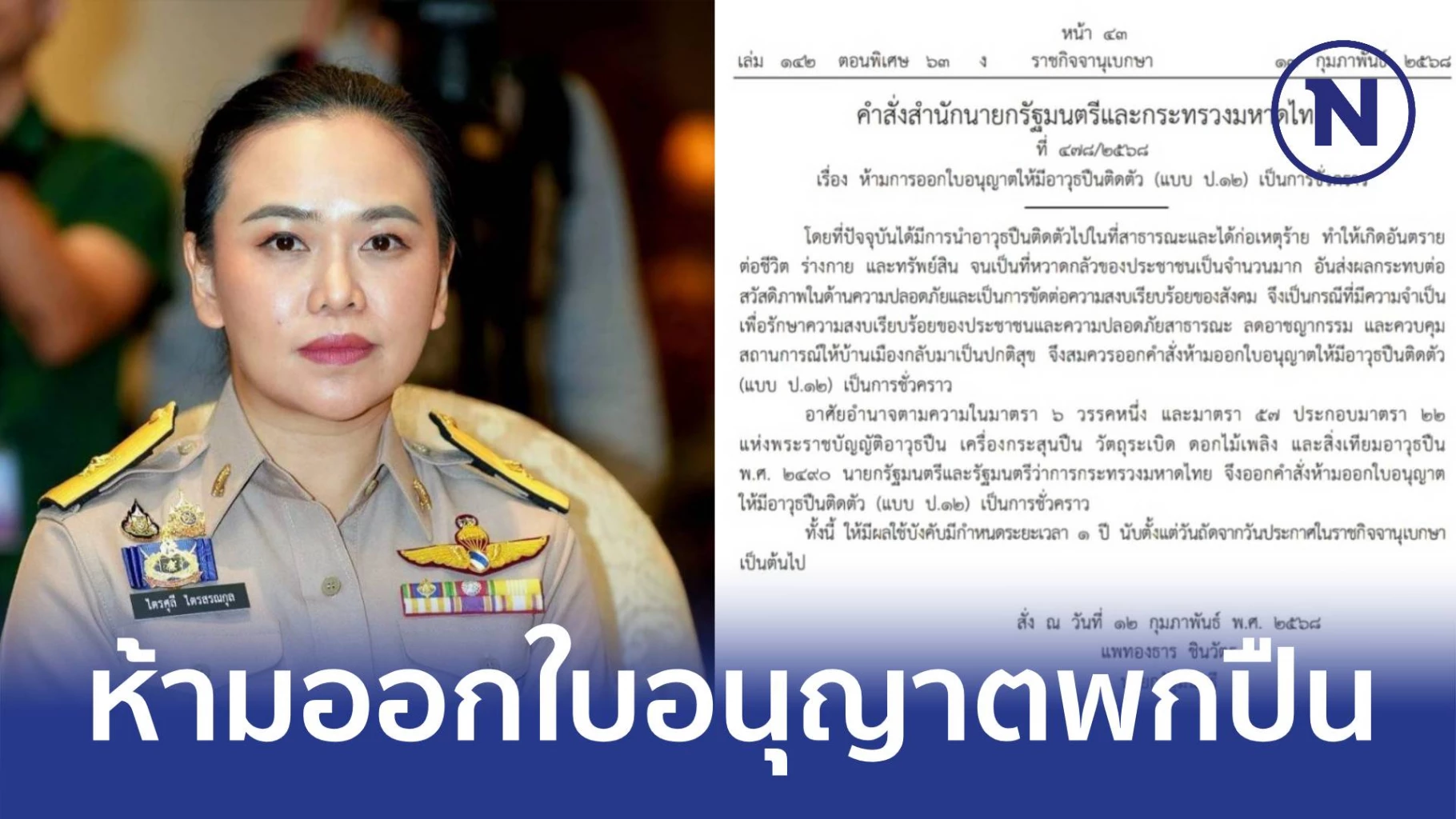 ด่วน มหาดไทย ออกคำสั่ง"ห้ามออกใบอนุญาตพกปืน" 1 ปี เริ่ม 14 ก.พ. 68
