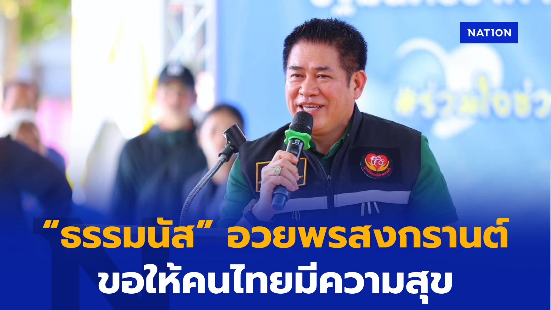 “ผมขอให้ทุกท่านมีสุขภาพพลานามัยที่แข็งแรง มีสุภาพจิตใจที่มีความเข้มแข็ง ท่านกลับไปที่ภูมิลำเนาของท่านในวันสำคัญซึ่งเป็นวันครอบครัว ก็ขอให้เดินทางโดยสวัสดิภาพทุกเส้นทาง มีความสุขกับสมาชิกในครอบครัวฃอให้ท่านประสบแต่ความสุข ความเจริญ ตลอดเทศกาลสงกรานต์ และเทศกาลปีใหม่ไทย สวัสดีครับ” ร.อ.ธรรมนัส กล่าว