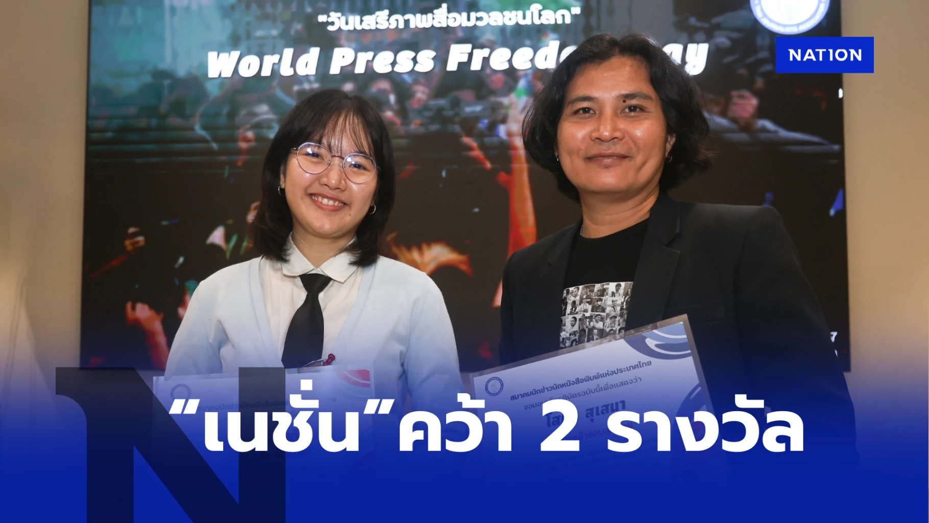 โดยงานนี้สื่อในเครือ “เนชั่นกรุ๊ป” ได้แก่ นางสาวชนาภา ศรจิตติโยธิน ผู้สื่อข่าวกรุงเทพธุรกิจ ได้รับรางวัลชนะเลิศ ประเภทคลิปสั้น หัวข้อ “ชีวิตคนทำงานสื่อ” และ นายโสภน สุเสนา ช่างภาพเนชั่นโฟโต้ ผลงานผ่านเข้ารอบสุดท้าย ประเภทภาพถ่าย หัวข้อ “ เสรีภาพสื่อเสรีภาพประชาชน” ชื่อภาพ “ตรงหน้าคือหน้าที่ ตรงนี้คือหัวใจ”
