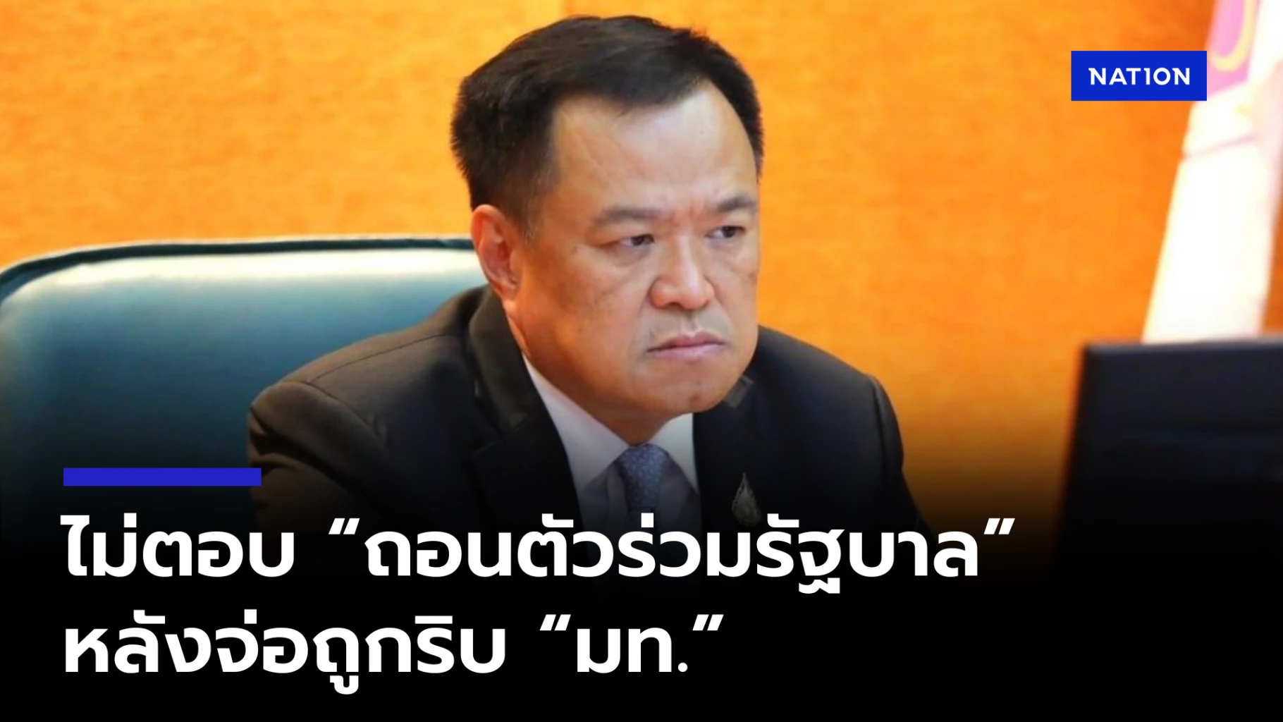 เมื่อถามว่าได้พูดคุยถึงเรื่องของ นายทักษิณ ชินวัตร อดีตนายกรัฐมนตรี ที่จะยึดเก้าอี้กระทรวงมหาดไทยกับนายกรัฐมนตรีหรือไม่นั้น นายอนุทินกล่าวว่า ไม่ได้คุย พร้อมปฏิเสธที่จะตอบคำถามว่า ประเด็นนี้จะทำให้ถึงขั้น พรรคภูมิใจไทย ถอนตัวออกจากการร่วมรัฐบาลหรือไม่ เพียงแต่บอกว่า "พรุ่งนี้ไปอ่างทอง ไปลงพื้นที่"