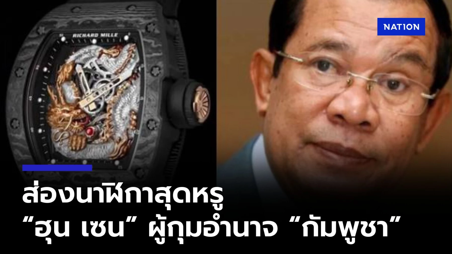 โดย เมื่อ 22 กุมภาพันธ์ 2023 ได้รวบรวมข้อมูล นาฬิกาที่ "ฮุน เซน" อดีตผู้นำสูงสุด ผู้กุมอำนาจใน "กัมพูชา" เคยสวมใส่ในช่วงที่ดำรงตำแหน่ง นายกรัฐมนตรีของกัมพูชา นับตั้งแต่ปี 1985 เป็นนาฬิกาสุดหรูชื่อดังแทบทั้งสิ้น พบว่ามี 8 เรือน ได้แก่