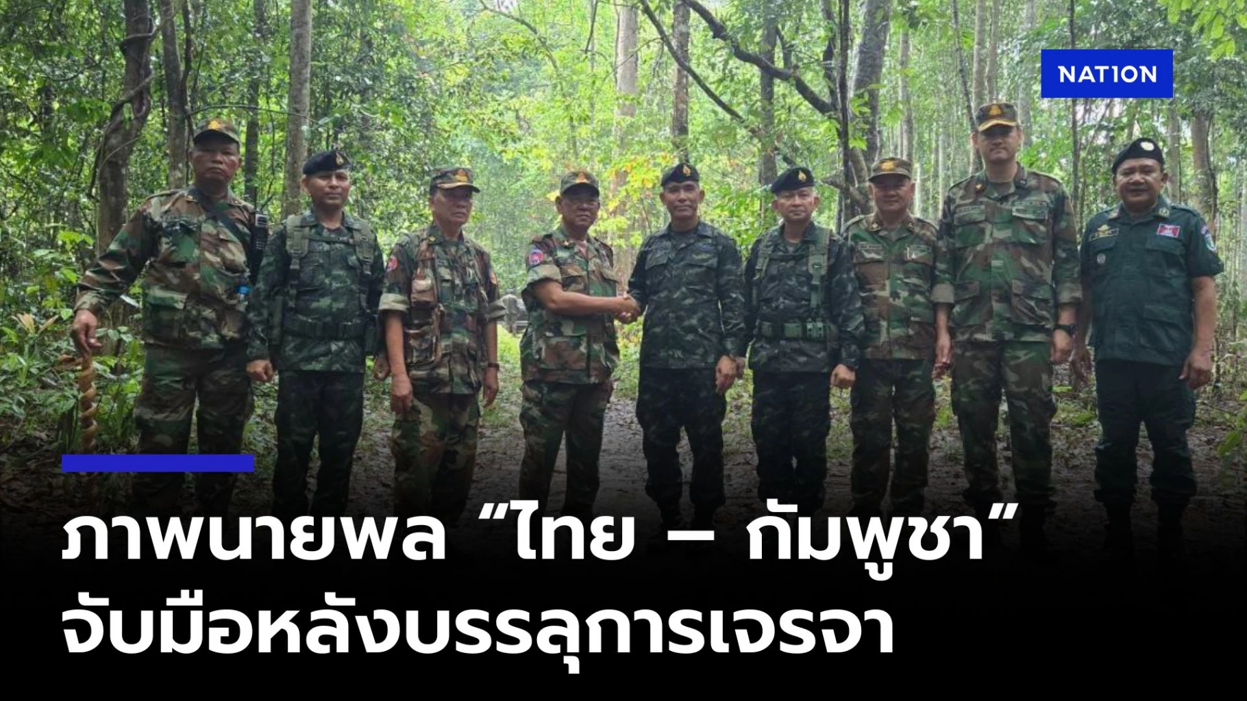 เปิดภาพล่าสุดภายหลังการเจรจาระหว่าง ทหารไทยกับทหารกัมพูชาระดับนายพล โดยฝ่ายกัมพูชา นำโดย พลโท สรัย ดึก รองผู้บัญชาการทหารบก และผู้บัญชาการกองพลสนับสนุนที่ 3 ส่วนทหารไทย นำโดย พลตรี สมภพ ภาระเวช ผู้บัญชาการกองกำลังสุรนารี และ พลตรี ณัฏฐ์ ศรีอินทร์ รองแม่ทัพภาคที่ 2 ทั้ง 2 ฝ่ายต่างจับมือยินดีภายหลังได้ข้อตกลงยุติความรุนแรงร่วมกัน