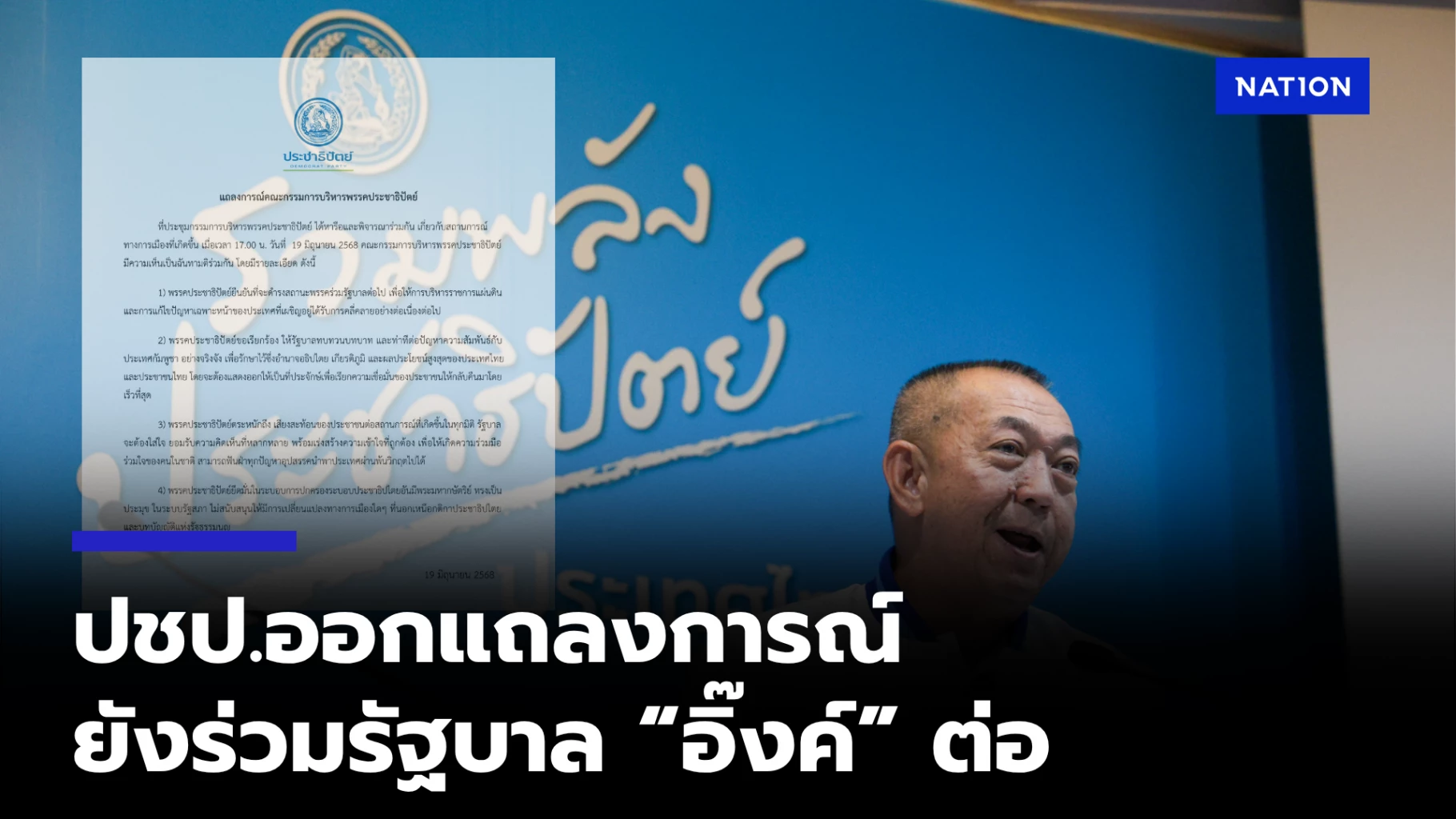 ปชป.ออกแถลงการณ์ ยังร่วมรัฐบาล “อิ๊งค์” ต่อ เพื่อให้ประเทศเดินหน้า