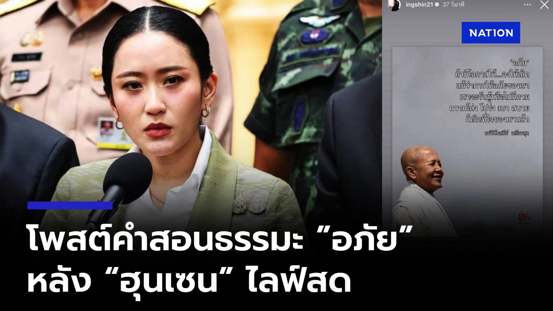 27 มิถุนายน 2568 "นายกฯ แพทองธาร ชินวัตร" โพสต์ ไอจีสตอรี่ @ingshin21 ถึงคำสอนของ "แม่ชีศันสนีย์" ว่า