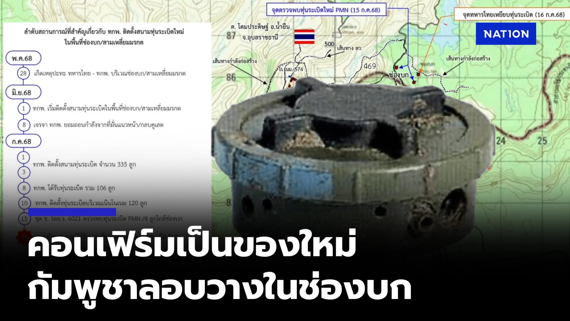 17 กรกฎาคม 2568 จากเหตุทหารไทยเหยียบกับระเบิดในพื้นที่ช่องบก จ.อุบลราชธานี วานนี้ (16 ก.ค.) มีรายงานว่า หน่วยปฏิบัติการต่อต้านทุ่นระเบิด กองบัญชาการกองทัพไทย (นปท.) ได้ตรวจสอบในเบื้องต้น มีข้อมูลบ่งชี้ว่า จุดที่เกิดเหตุเป็นพื้นที่สีเขียว คือแนวสนามทุ่นระเบิดที่ได้กวาดล้างทำลายหมดแล้ว และจากการพิสูจน์ด้วยภาพคาดว่า ทุ่นระเบิดที่เกิดเหตุนั้นคือ PMN-2 ซึ่งเป็นทุ่นใหม่ จึงคาดว่าจะเป็นทุ่นระเบิดที่ถูกทหารกัมพูชามาวางใหม่