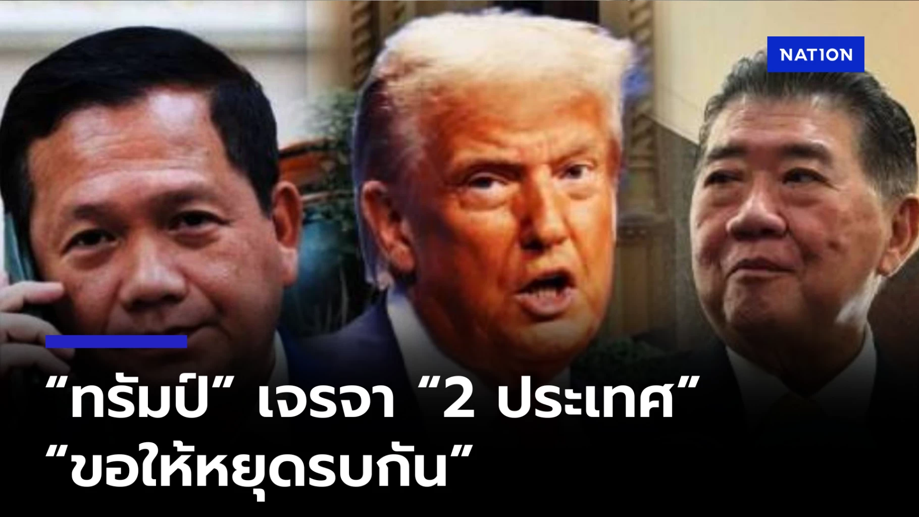 ผมเพิ่งได้พูดคุยกับรักษาการนายกรัฐมนตรีของประเทศไทย และมันเป็นการสนทนาที่ดีมาก ประเทศไทย เช่นเดียวกับกัมพูชา ต้องการให้มีการหยุดยิงโดยทันที และสันติภาพ